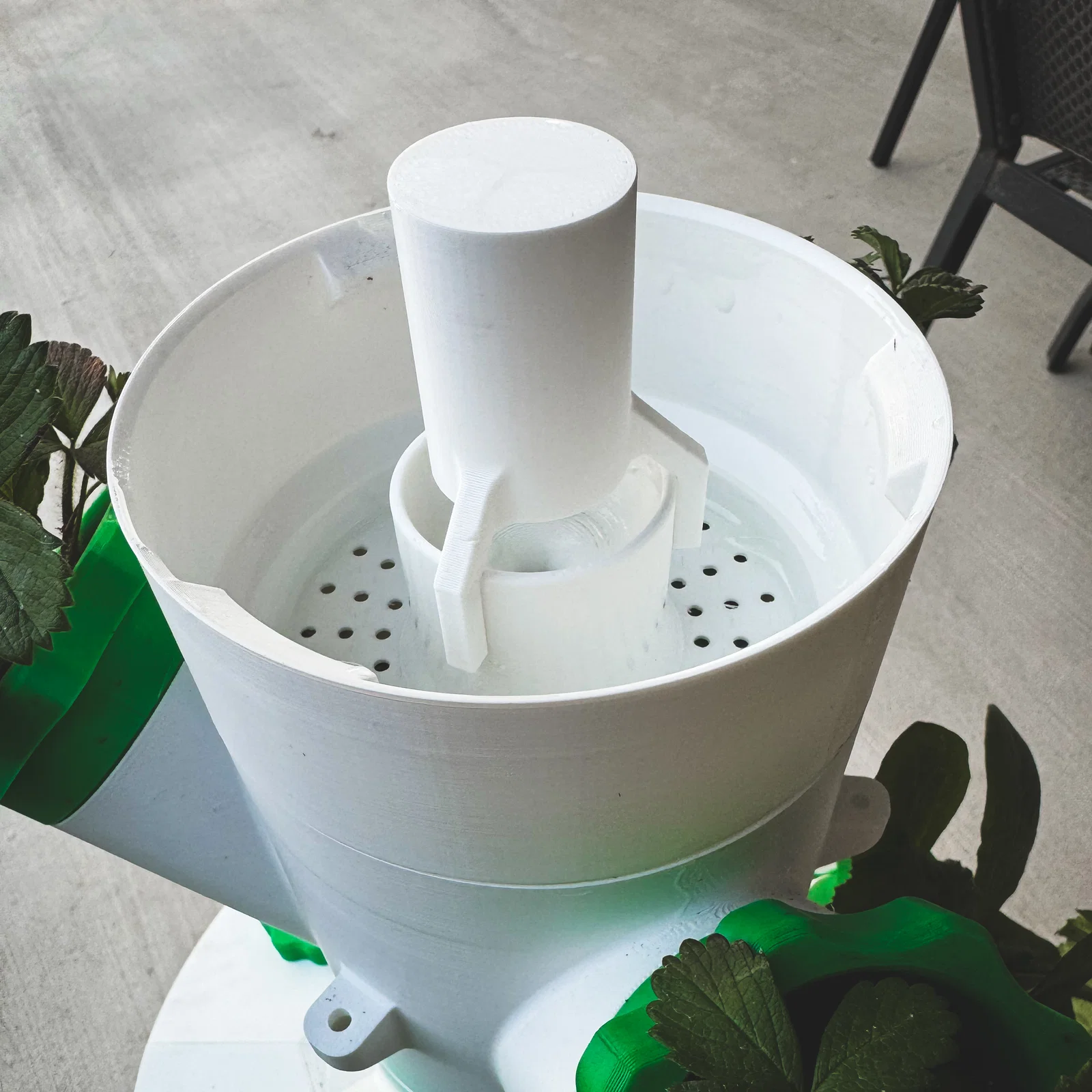 Stream breaker cho Modular Hydroponic Tower được thêm phần cylinder để nắp đè giữ, khỏi cần dán keo. Có bo fillet quanh chân để chắc hơn. In úp cylinder xuống build plate, infill 5–20%, không cần supports.