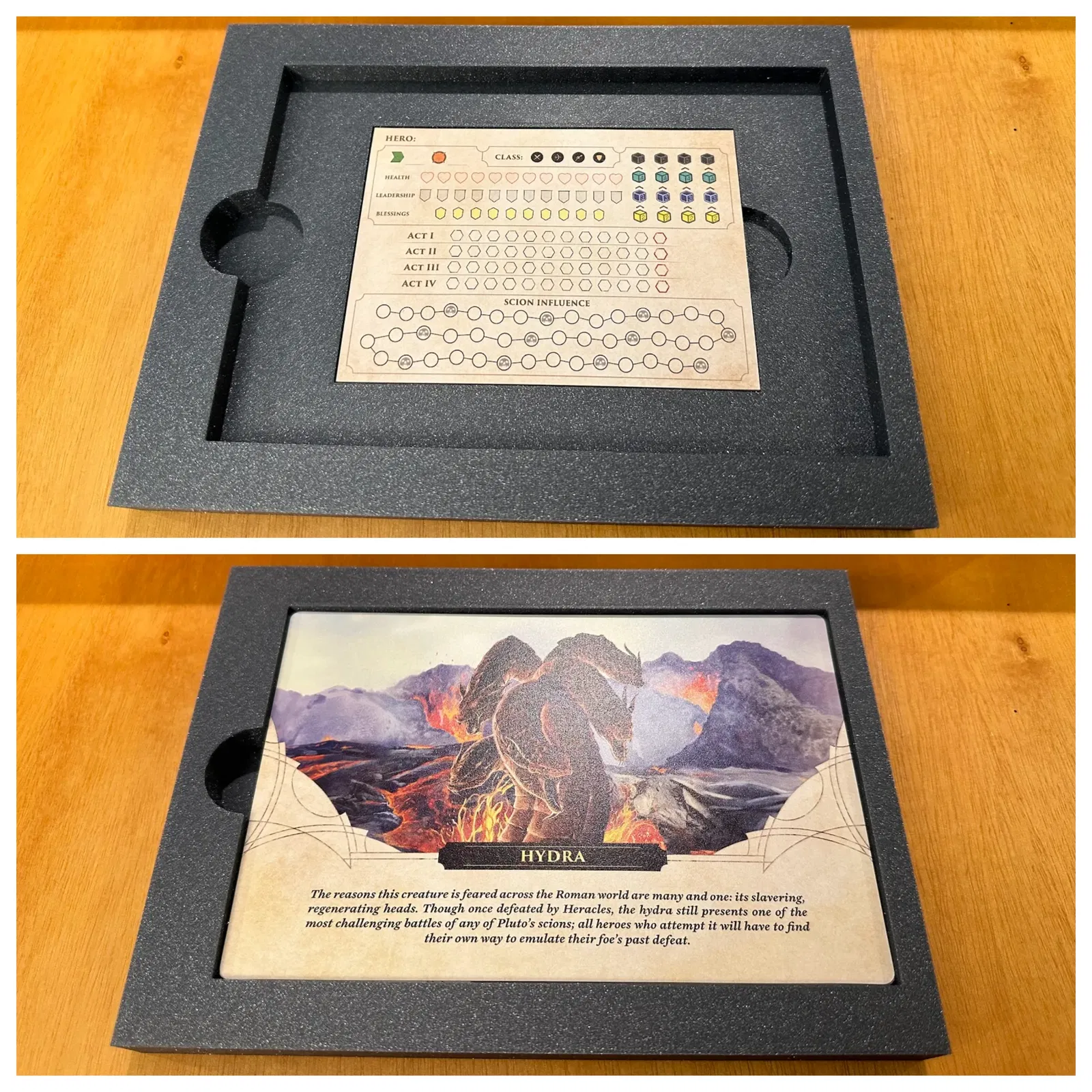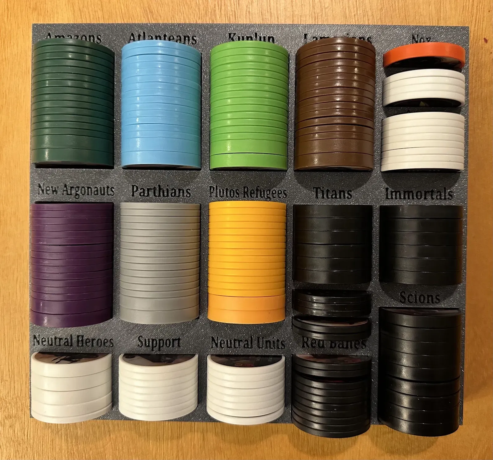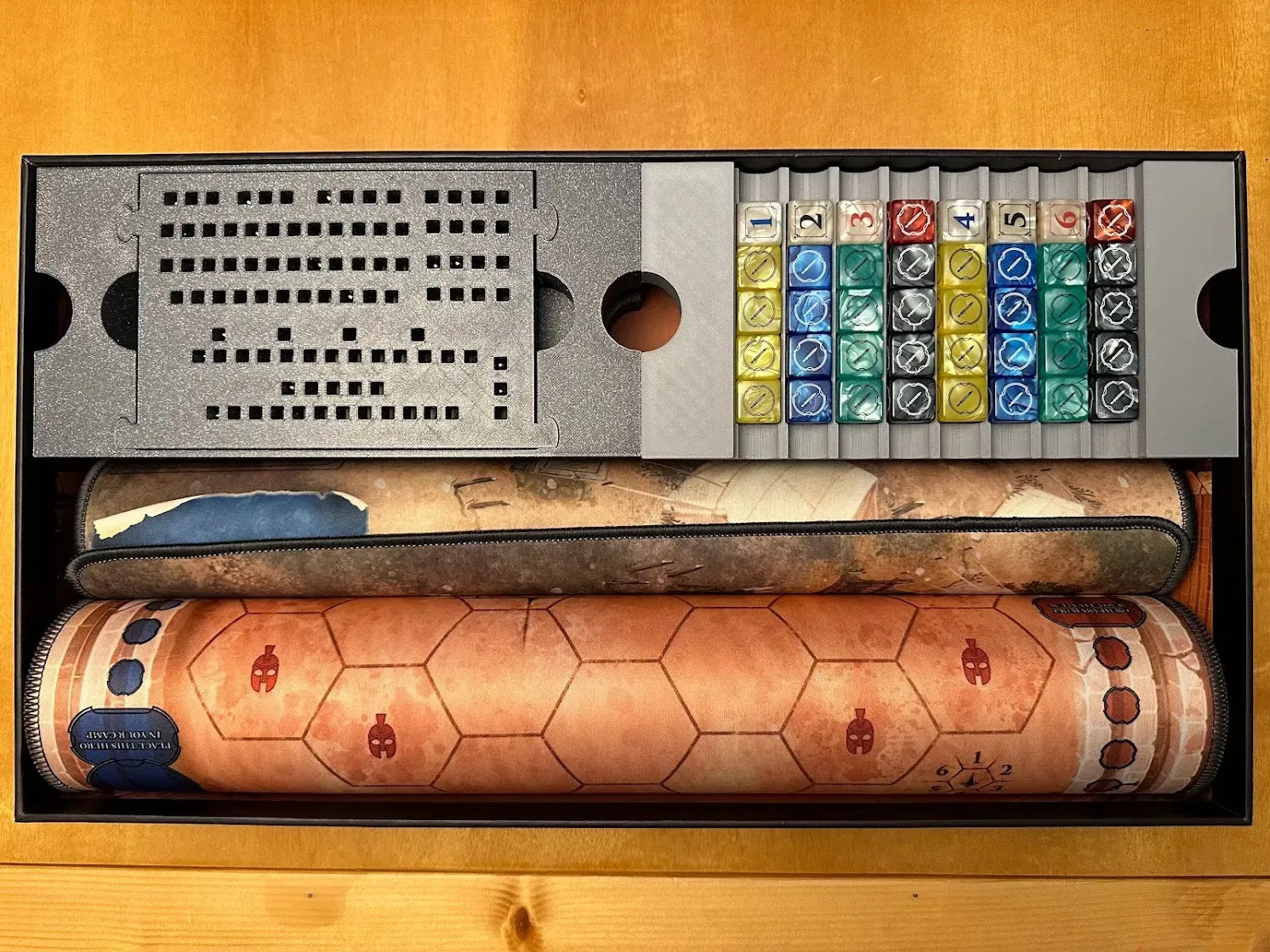 - khay Scion/Immortal. Các khay trại được thiết kế để thay thế các khay tiêu chuẩn của CTG trên tấm thế giới và cung cấp một số tổ chức bổ sung cho chiến thuật, đơn vị đấu trường, cơ chế cụ thể của đấu trường và thẻ tài năng trong một lượt Victorum. Tôi thường giữ xúc xắc, hạt và kiếm nhựa dư thừa của mình trong khu vực thành phần tròn. Sân vận động vẫn được sử dụng để lưu trữ các chip phe phái (6 mỗi loại), chip cơ hội và một bộ xúc xắc. Các khay trại có thể được sử dụng cho một trò chơi Remastered, mặc dù các chip không phải Remastered sẽ phải được để sang một bên trong suốt trò chơi nếu bạn muốn lưu trữ các chip phe phái bên cạnh sức khỏe. Hộp Remastered bao gồm: - hệ thống lưu trữ cho các lượt chơi Victorum - khay lưu chip - Khay lưu chip bao gồm các khe chia để ngăn chặn chip trượt xung quanh hoặc để tổ chức thêm. - In 8 khe chia để đảm bảo phủ đầy đủ. - thảm hero neoprene + khay lưu thẻ sức mạnh/sự kiện