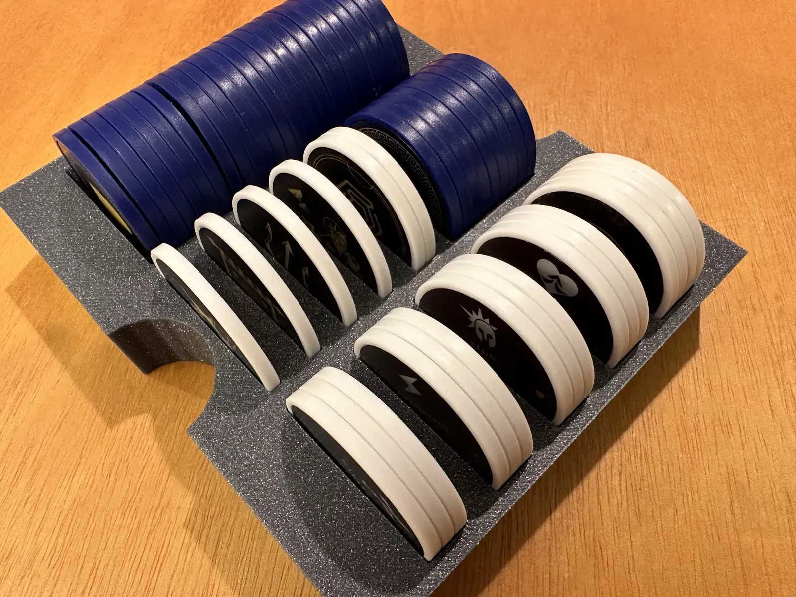- Khay xúc xắc bổ sung và khay chip CTG tiêu chuẩn với bộ chip sức khỏe thứ 2 - Khay xúc xắc bổ sung chứa thêm 2 bộ xúc xắc Hoplo, cho phép tất cả ba bộ xúc xắc được lưu trữ nếu bạn cũng đã lấy bộ hợp kim. Tạo nắp khay lưu là phần khó khăn nhất trong quá trình. Khay được thiết kế để duy trì một vài thẻ sức mạnh và sự kiện dựa trên tiến trình của bạn qua chiến dịch, cũng như để giữ an toàn cho những thanh kiếm nhựa trong thảm neoprene. Trong quá trình thử nghiệm, tôi không thể làm cho một thanh kiếm rơi ra khi được chứa trong khay, tuy nhiên với góc độ đúng, có thể một thanh kiếm sẽ lọt qua một khoảng trống trên nắp. Cũng có một lượng nhỏ góc cạnh dọc theo các bức tường thẻ để giữ vị trí trong khi lưu trữ theo chiều dọc. - 7/20 - sau một số ghi chú từ những người đã in nắp khay lưu, tôi đã điều chỉnh các cánh của miếng ghép để nhỏ hơn một chút và hy vọng sẽ giải quyết bất kỳ vấn đề cọ xát/chật chội nào khi lắp vào vị trí Lưu trữ theo chiều dọc: Cả hai hộp đều được thử nghiệm cho lưu trữ theo chiều dọc, Victorum có một chút nâng nắp trong khi cũng chứa tháp xúc xắc Hoplomachus và túi cao cấp. Nếu lưu trữ theo chiều dọc, tôi khuyên bạn nên định hướng với sân vận động ở trên cùng để đảm bảo sách/thảm đấu trường luôn che phủ chip. Nếu bạn không có tháp xúc xắc, hoặc nếu bạn chỉ muốn một sự vừa vặn chặt chẽ hơn, tôi đã bao gồm một phiên bản sử dụng các miếng đệm cho hộp Victorum: in miếng đệm trại, sau đó chọn giữa miếng đệm phe & khay ngắn HOẶC khay phe cao (miếng đệm đã được tích hợp sẵn).