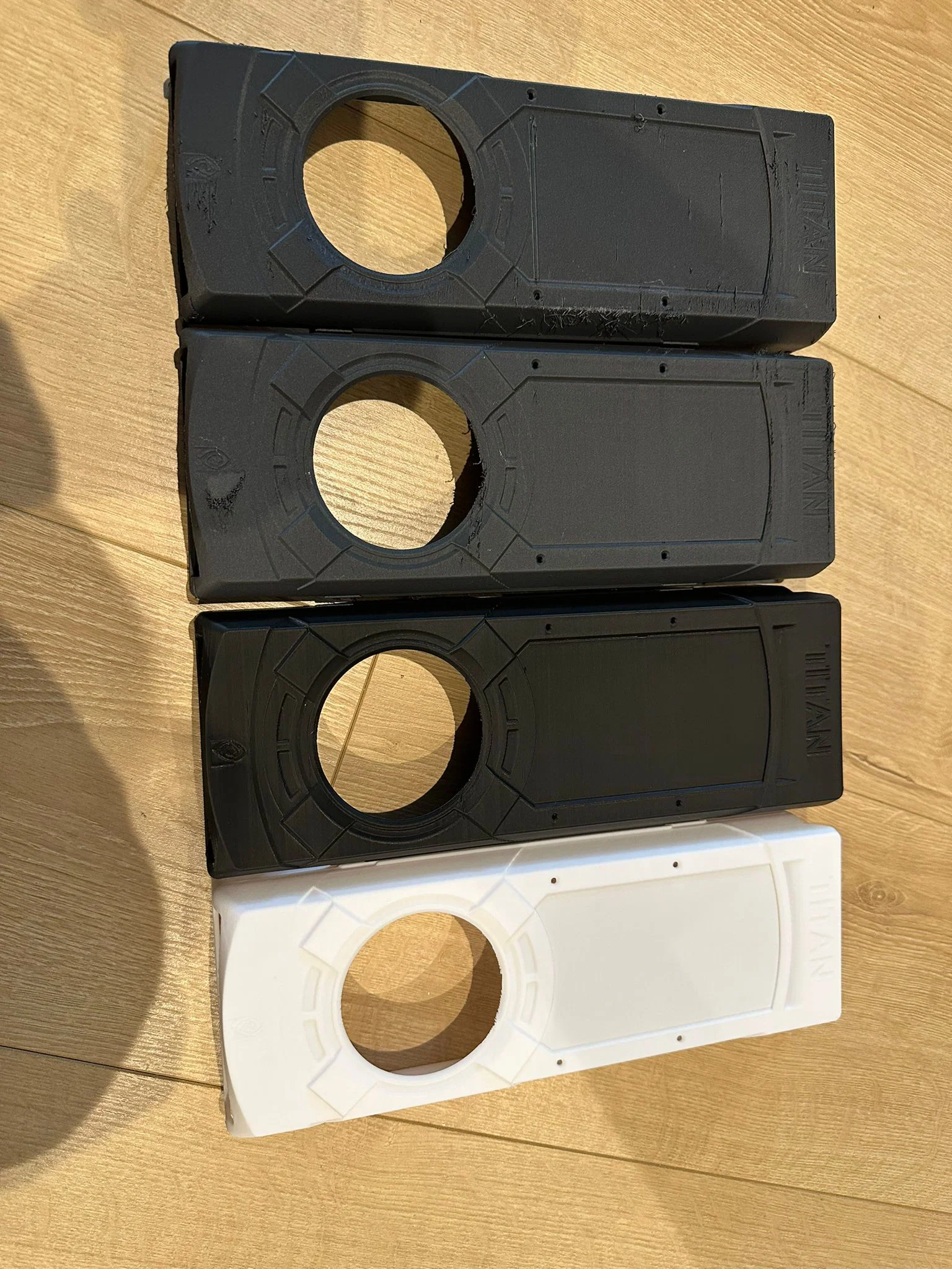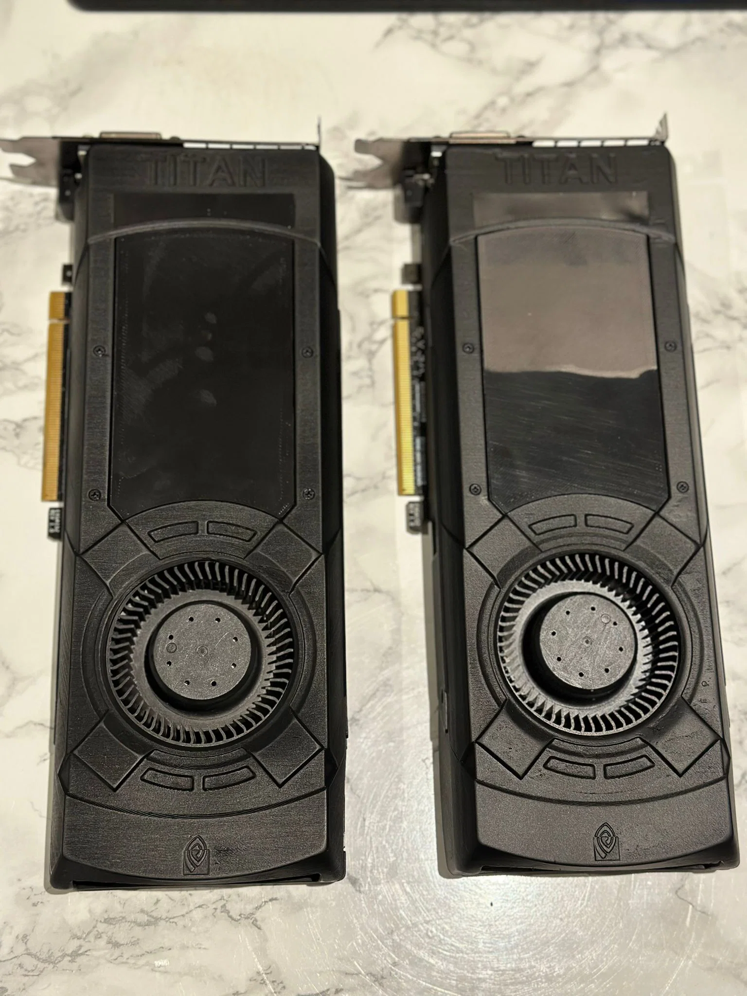 Đây là một mẫu dành cho NVIDIA GTX TITAN. Nó có thể lắp trên card Founders Edition (thực tế còn vừa cả 980TI). Nên in bằng PETG vì vấn đề nhiệt độ. Mình đã in thử bằng PLA để test, rồi dùng PETG gia cường sợi carbon (Carbon Fiber reinforced PETG) cho phiên bản cuối để sử dụng thực tế.