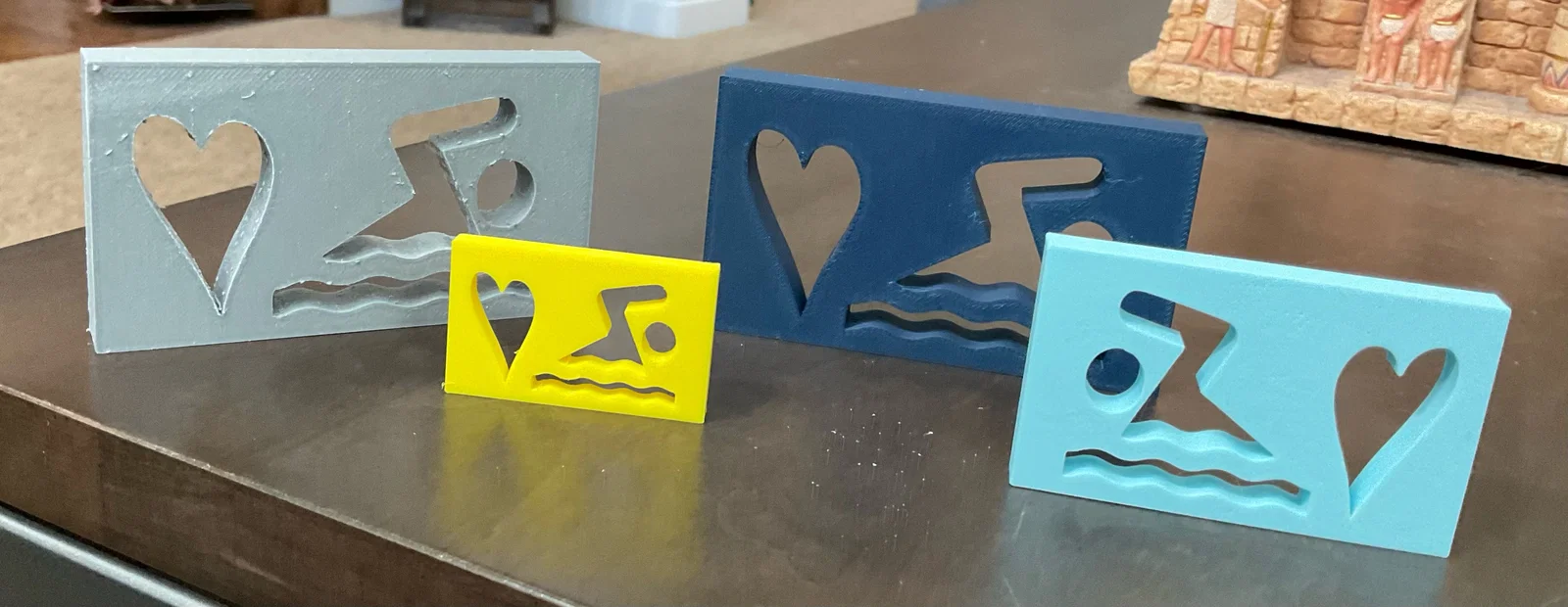 Dành cho những ai mê bơi lội và muốn thể hiện điều đó! Mẫu này làm ra để tặng những người yêu bơi—có thể tặng trong tiệc tổng kết đội bơi (swim banquet), tại một buổi thi đấu (swim meet), hoặc bất cứ lúc nào bạn muốn nói với ai đó rằng họ đang làm điều họ yêu thích và chúc mừng họ! Nếu in nhỏ lại thì có thể treo lên swim backpack. Bạn muốn dùng vào việc gì cũng được, khả năng thì vô tận! Bản màu xám và vàng mình in bằng Prusa Mini, còn bản xanh đậm và xanh băng (icy blue) thì in bằng Bambu X1C. Chúc bạn in vui!!