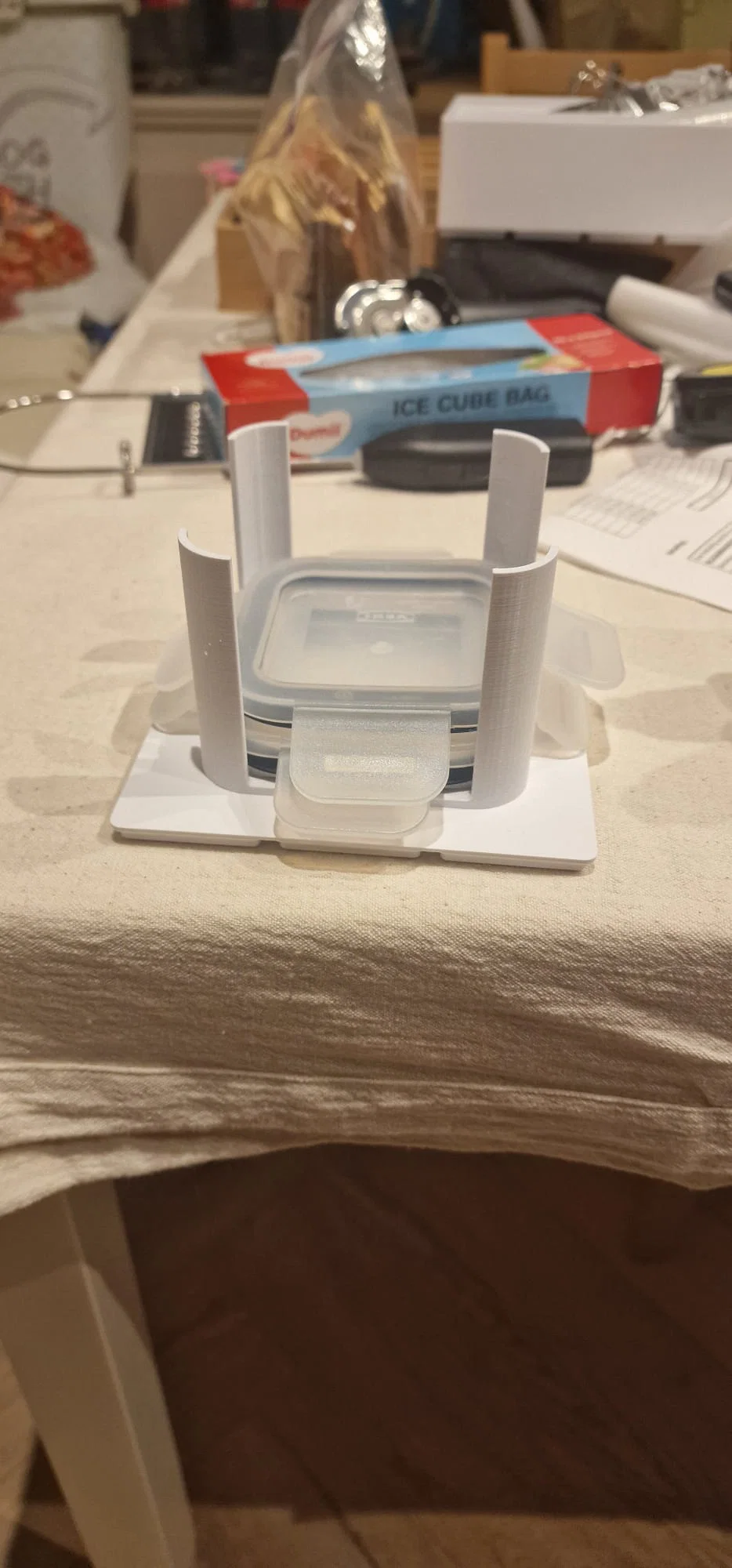 Nếu bạn đang sở hữu bộ hộp đựng thực phẩm Ikea 365+ và cảm thấy đau đầu vì những chiếc nắp nhựa cứ nằm vương vãi, lộn xộn trong ngăn kéo bếp, thì đây chính là giải pháp dành cho bạn. Mẫu thiết kế này được tạo ra để chuyên dụng cho việc giữ cố định các loại nắp hộp vuông của dòng Ikea 365+, giúp khu vực lưu trữ đồ nhà bếp của bạn trở nên gọn gàng, khoa học và thẩm mỹ hơn hẳn.