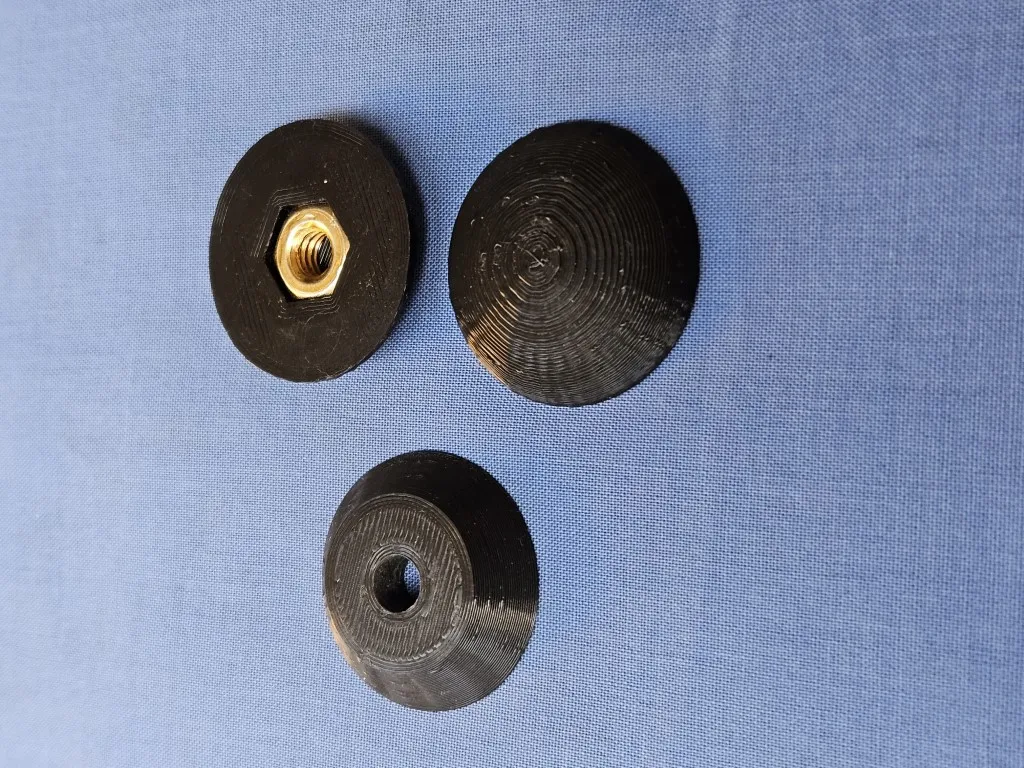 Gắn một đai ốc ¼ inch x 20 tpi vào lỗ lõm bằng epoxy. Nếu đai ốc quá sâu và nhô lên, chỉ cần tăng chiều cao của mô hình trong slicer của bạn thêm một vài milimét.
