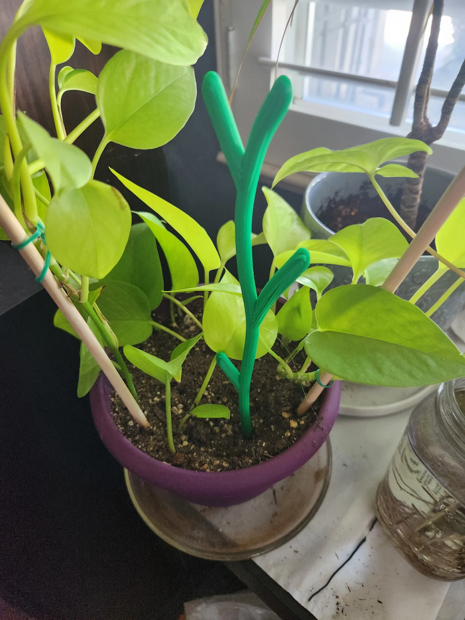 Thay vì dùng que tre cắm tạm, mẫu giá đỡ cây cảnh dạng cành nhánh này nhìn tự nhiên và đẹp hơn cho chậu cây trong nhà. In bằng PLA, đặt nằm phẳng trên build plate; thường không cần supports, nên có heated bed.