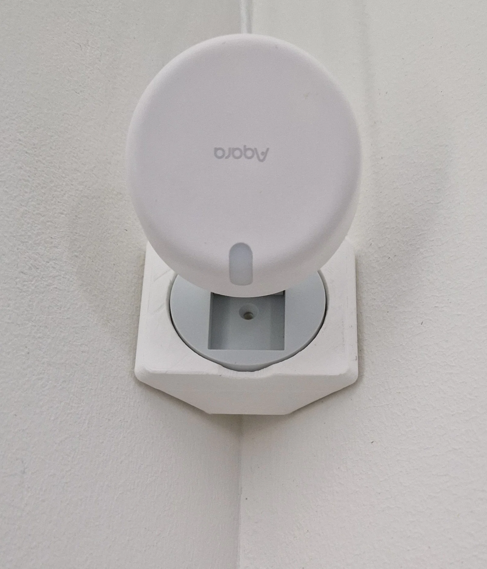 Bracket gắn góc cho cảm biến hiện diện Aqara FP2, fit chắc không cần vít. Có lỗ bắt tường được FP2 che kín, in không cần supports/raft, bền với 20% infill. Bản v2 thấp hơn, dễ tháo xoay và dư chỗ cho dây USB.