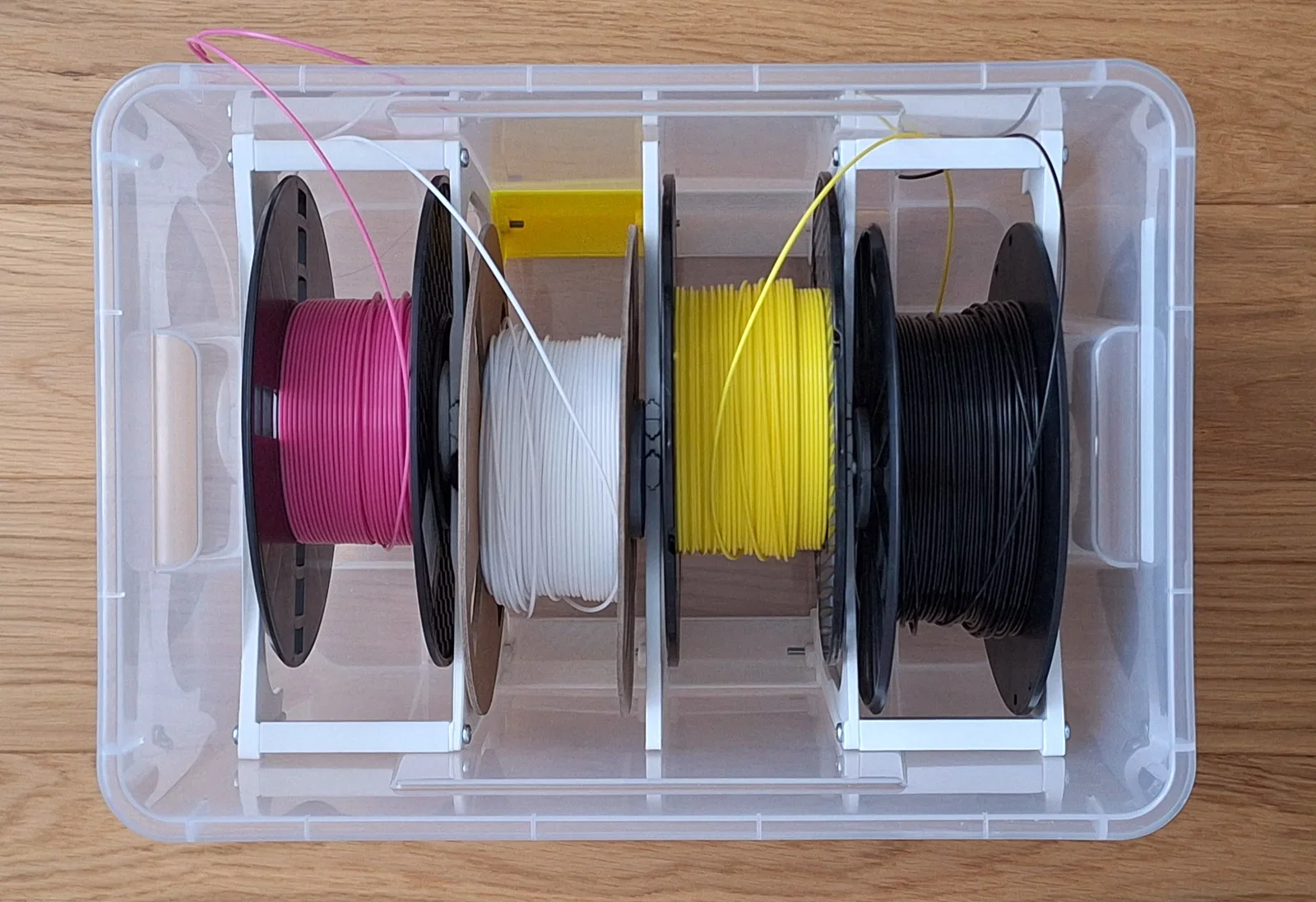 Hộp Samla 22L này phù hợp cho 4 cuộn 1kg (đường kính lên đến 205mm, dày 70mm). Tùy vào độ chính xác khi lắp ráp, bạn có thể linh hoạt thay đổi cấu hình cho phù hợp với cuộn nhựa của mình.