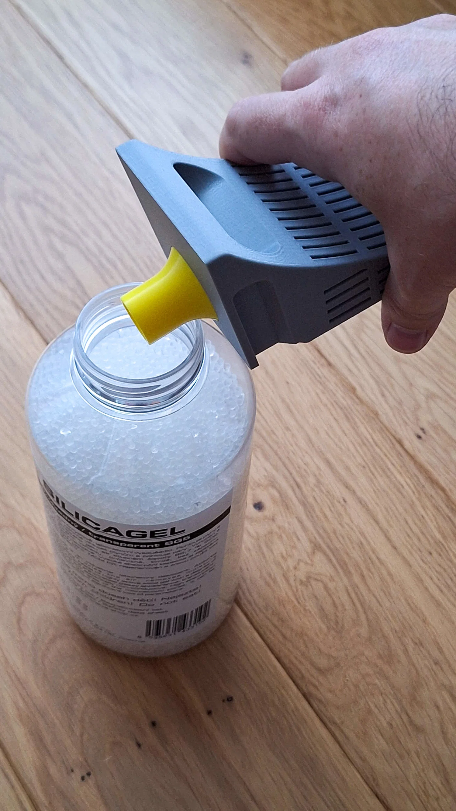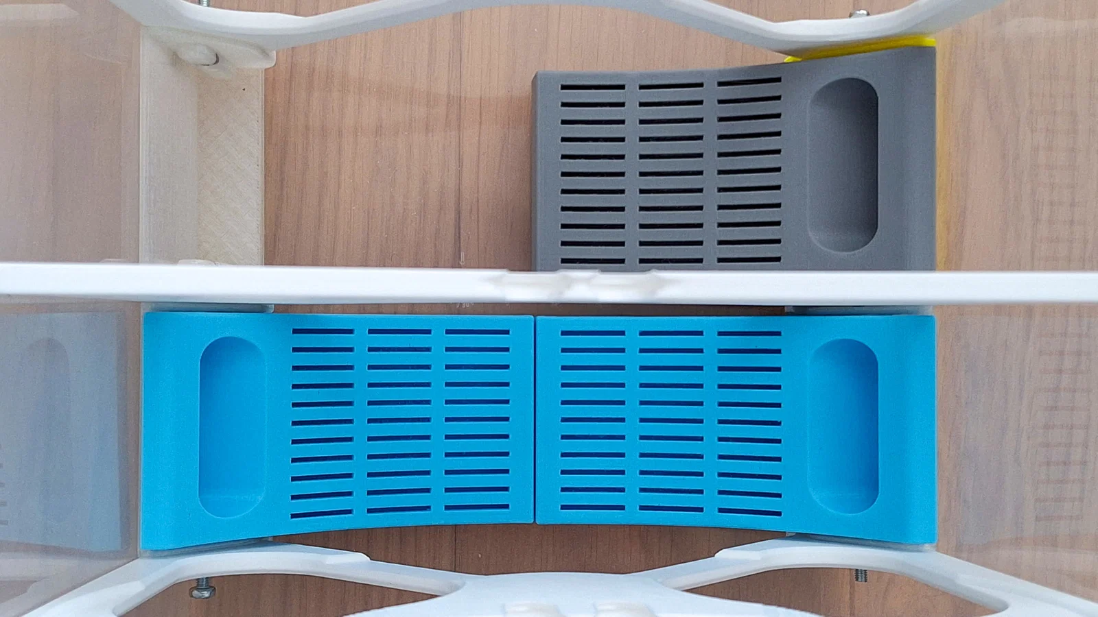 - Các hộp chứa Silica gel tương thích hoàn toàn với phiên bản cũ V1 và V1b. Chỉ cần in thêm giá đỡ, bắt vít vào các thanh xương và gắn hộp vào.