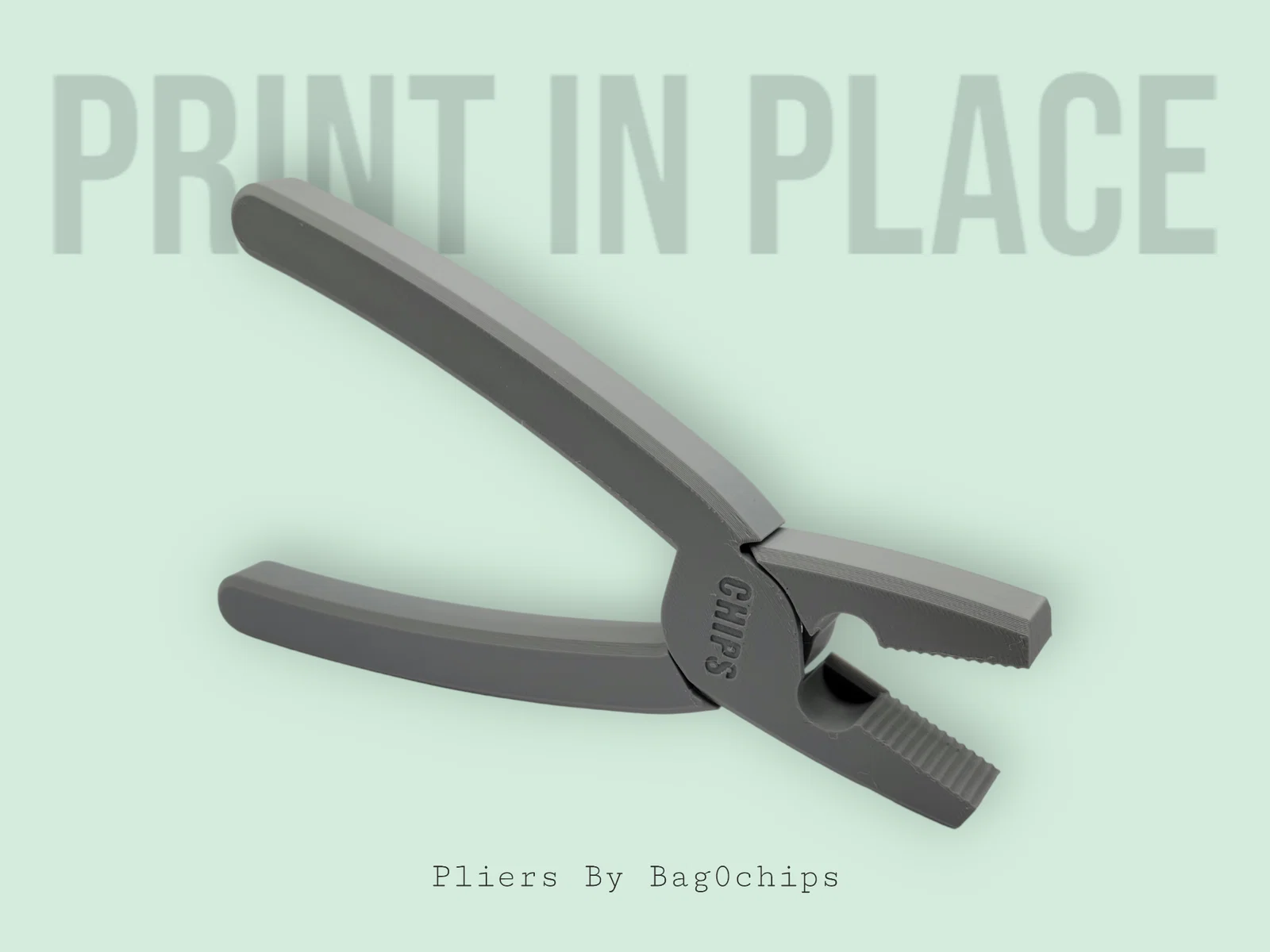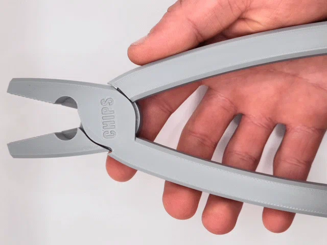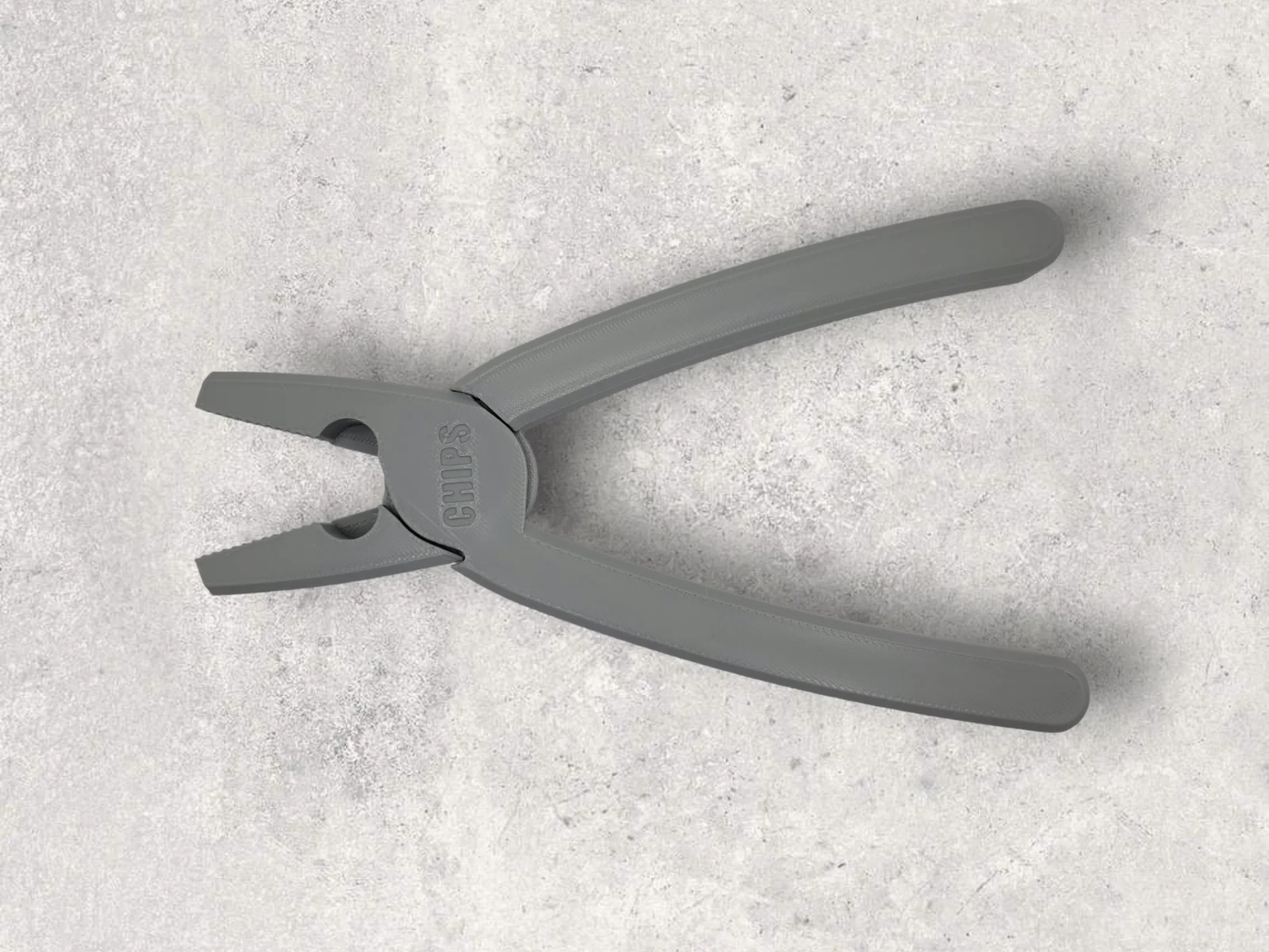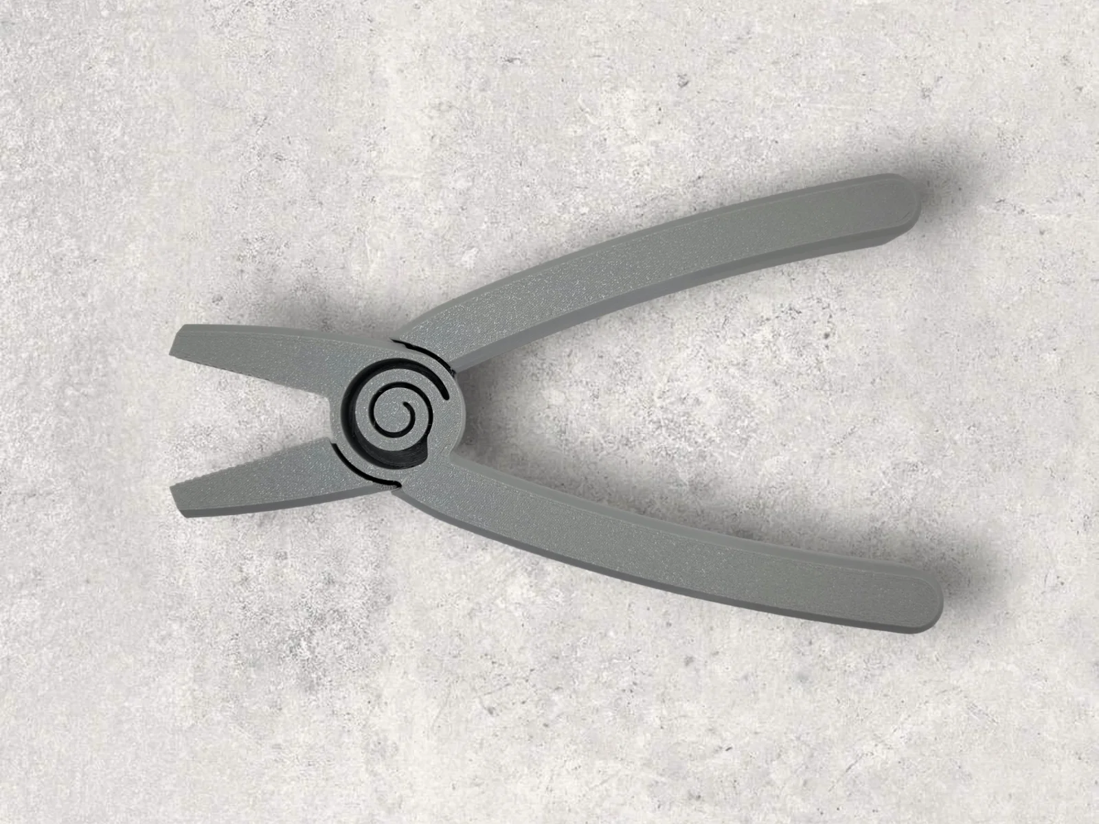 Kìm tổ hợp dạng Print-in-Place có lò xo, in liền khối và dùng được ngay sau khi in. Không tối ưu cho lực kẹp mạnh, nhưng thao tác linh hoạt; vật liệu nhựa không dẫn điện nên có thể cân nhắc dùng khi làm việc với điện.