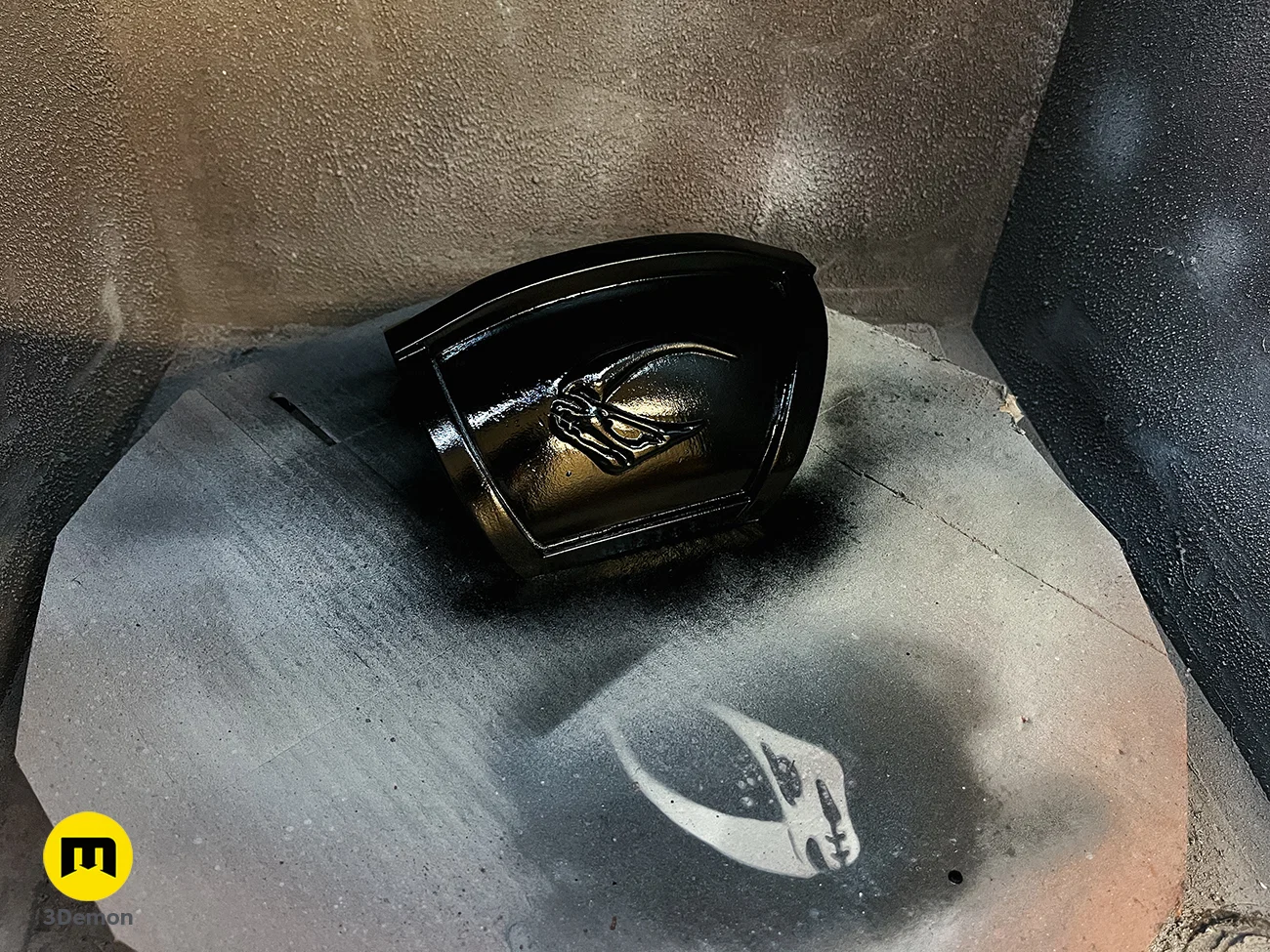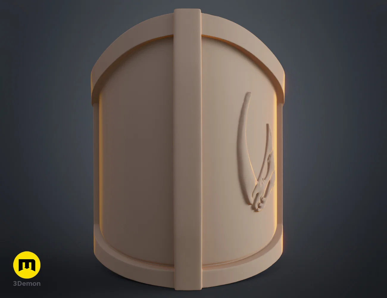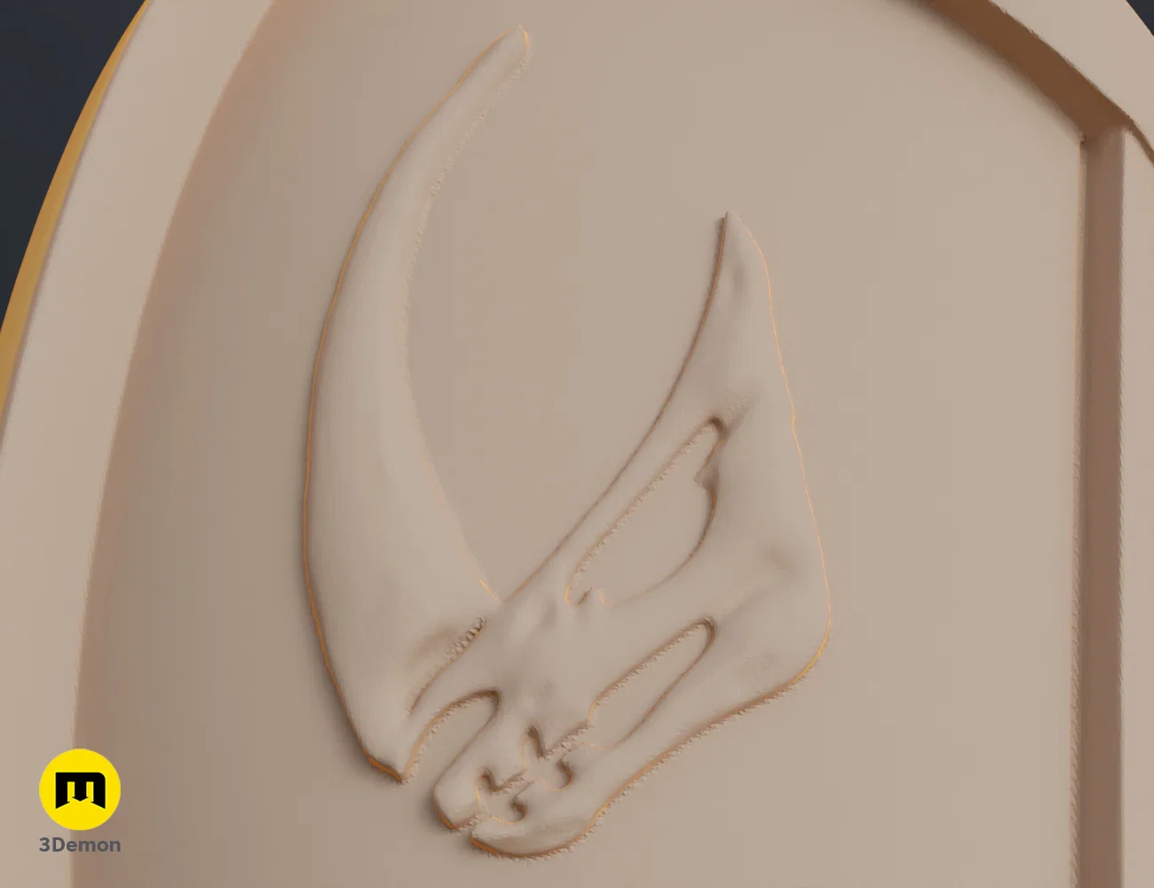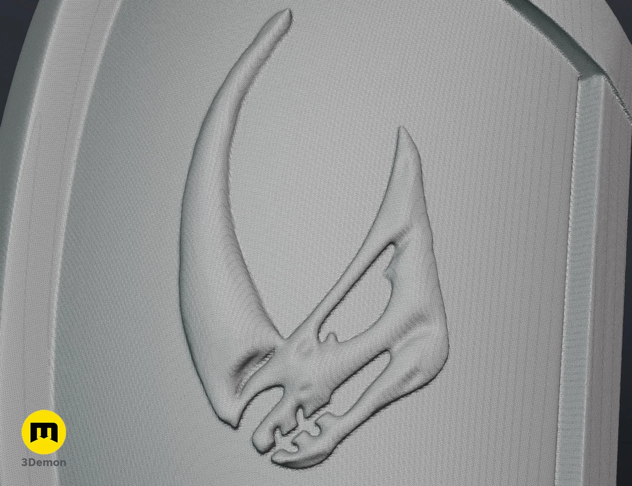 Model kỹ thuật số giáp vai Mandalorian Mudhorn signet, sẵn sàng in 3D (STL/OBJ) cho print bed 200 mm. Kèm kích thước tham khảo, gợi ý printer settings và định hướng in ít support, phù hợp làm cosplay.