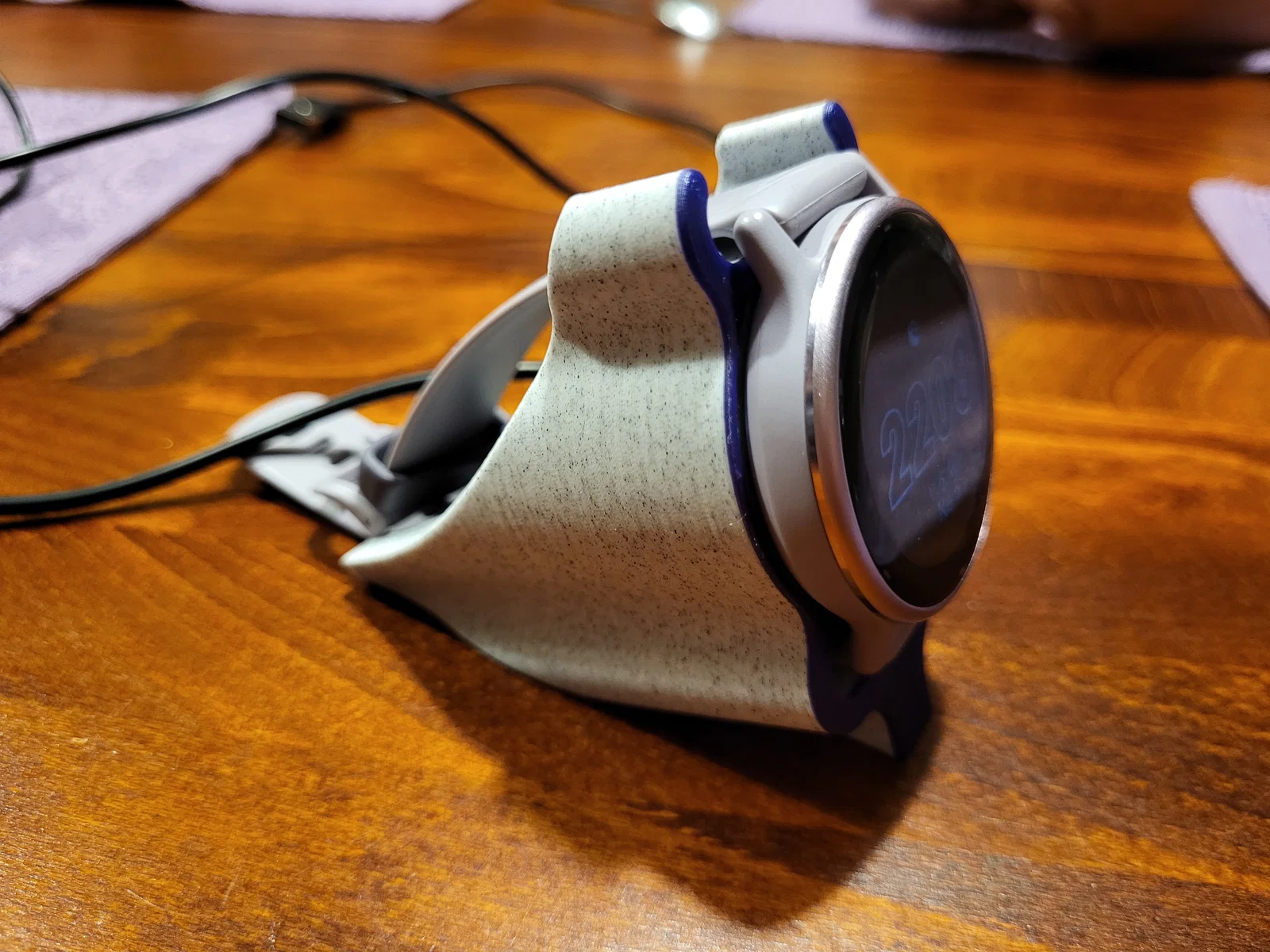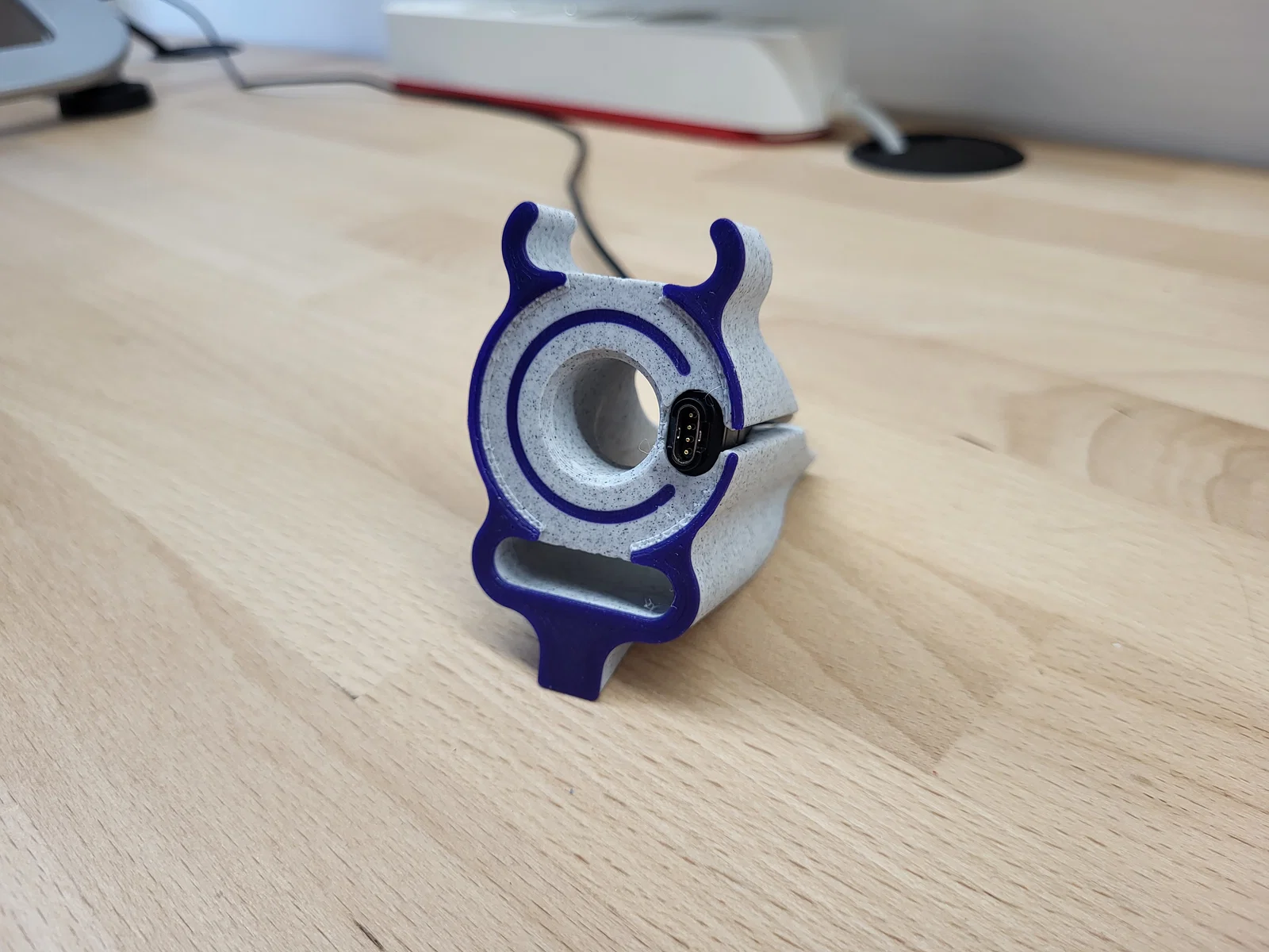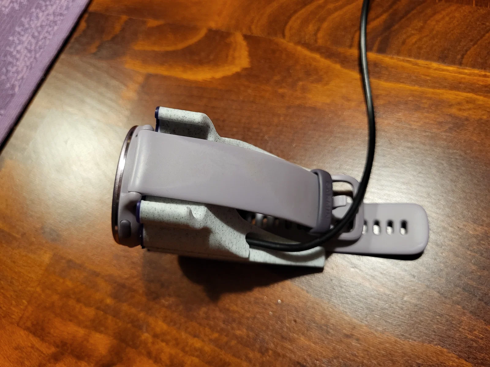 Dựa trên mẫu đế sạc mình làm cho đồng hồ Epix, mình chỉnh sửa lại phiên bản này cho Vivoactive 5, vừa với cáp sạc chính hãng (ấn hơi chặt vào) — vui lòng xem kích thước của mẫu đính kèm để kiểm tra là bạn có đúng loại đầu cắm ở phía cuối hay không…