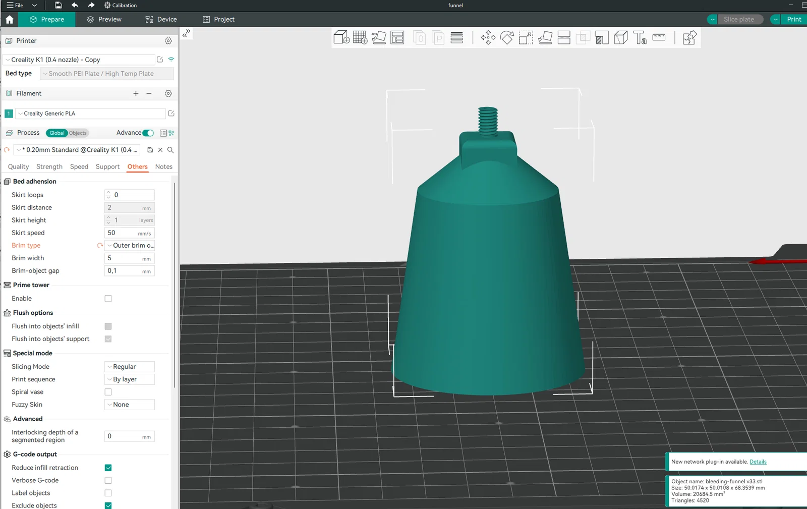 - có thể thêm brim nếu bạn bị vấn đề bám bàn in