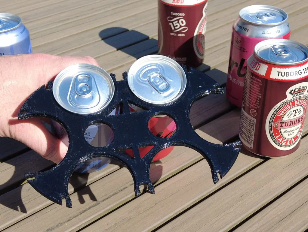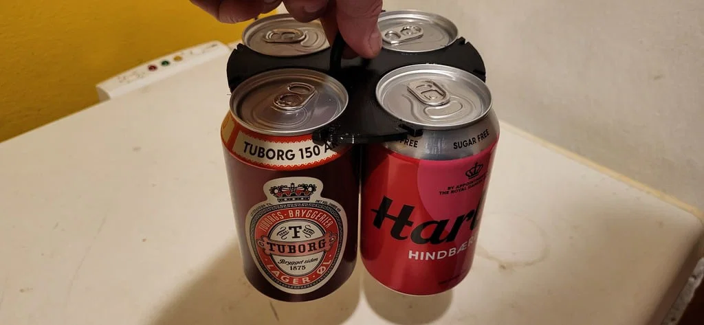 Can holder đơn giản, in nhanh để xách/giữ 4 hoặc 6 lon nước ngọt hoặc bia. Bản cập nhật V5 & V6 êm hơn cho lon và không cần support; Version 7 dùng cho 6 lon.