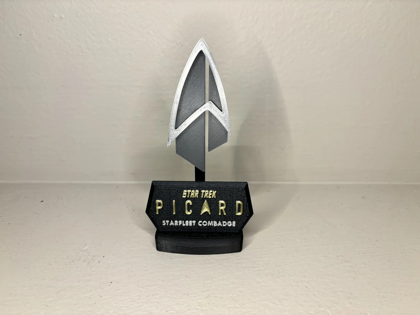Mẫu combadge Star Trek: Picard dễ in, có kèm chân đế trưng bày và back plate. Dùng nam châm 6x2mm; gợi ý thiết lập PrusaSlicer như variable layer height và ironing để bề mặt mịn, chi tiết đẹp.