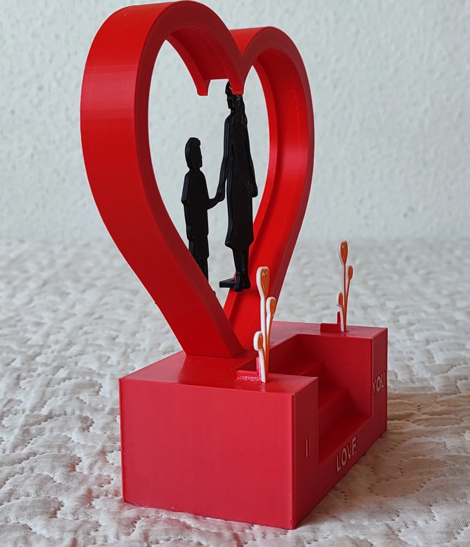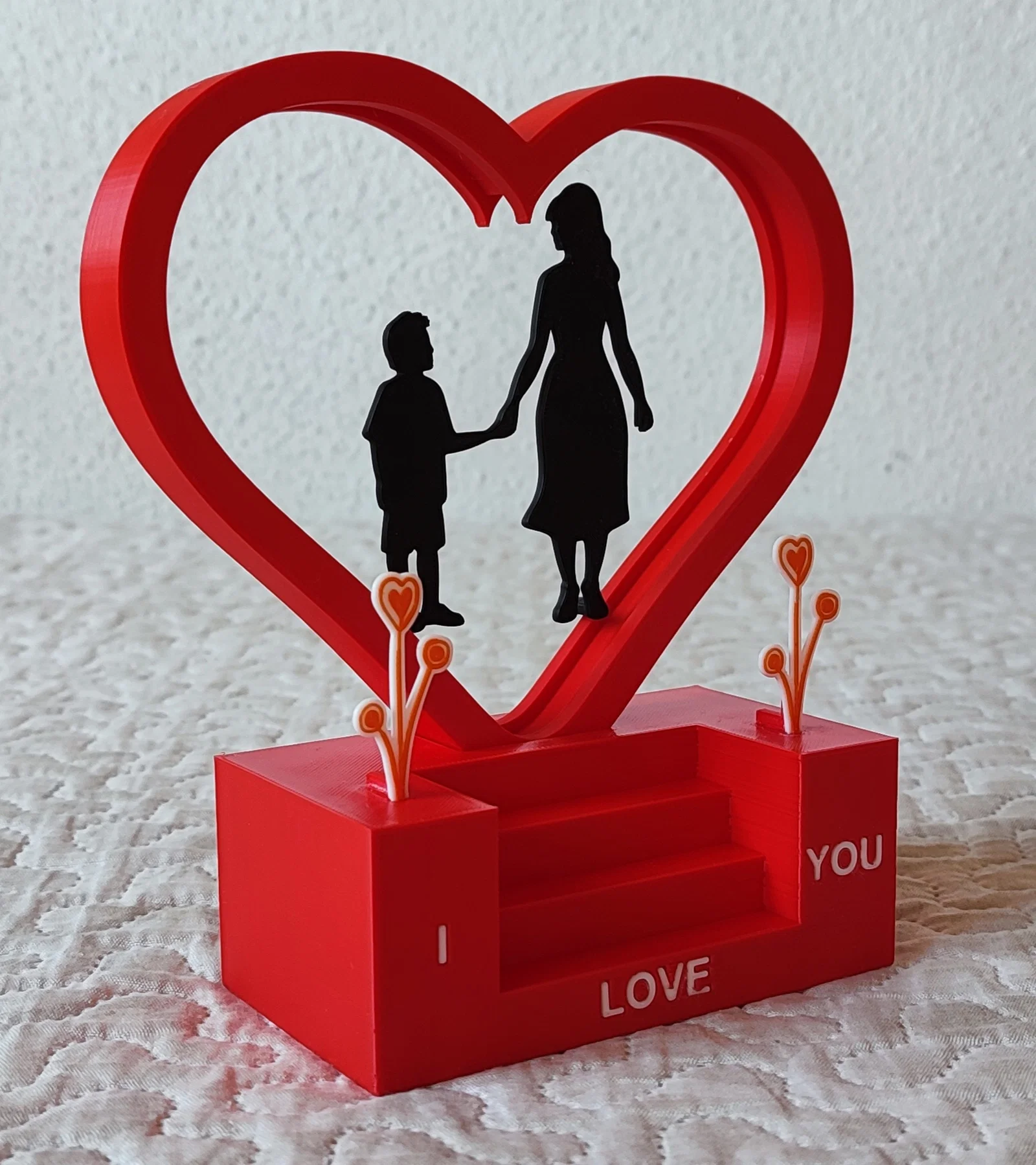 Regola dia de la madre là món quà dễ thương cho Ngày của Mẹ. Mẫu được chia nhiều phần giúp in tiện hơn, thường cần supports. Có thể dán keo siêu dính, nắp dùng ốc M3 hoặc dán keo; hoa đổi màu bằng M600.