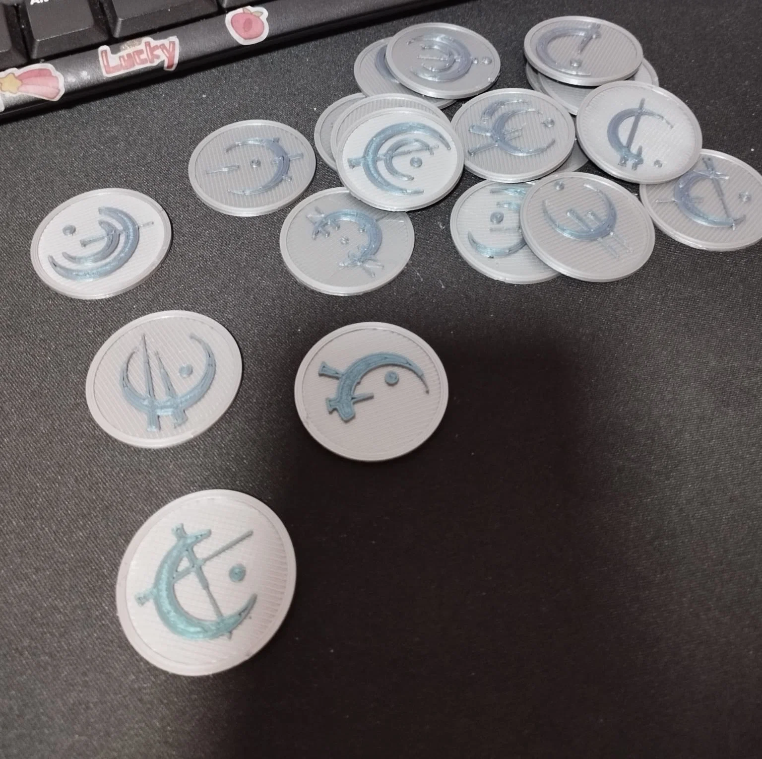 • Kỹ thuật đổi màu: Để làm nổi bật biểu tượng trên bề mặt xu, hãy cân nhắc việc đổi màu nhựa (filament) ở những lớp in cuối cùng. Sự tương phản màu sắc sẽ giúp các ký hiệu Allomantic trông sắc sảo và nghệ thuật hơn rất nhiều.