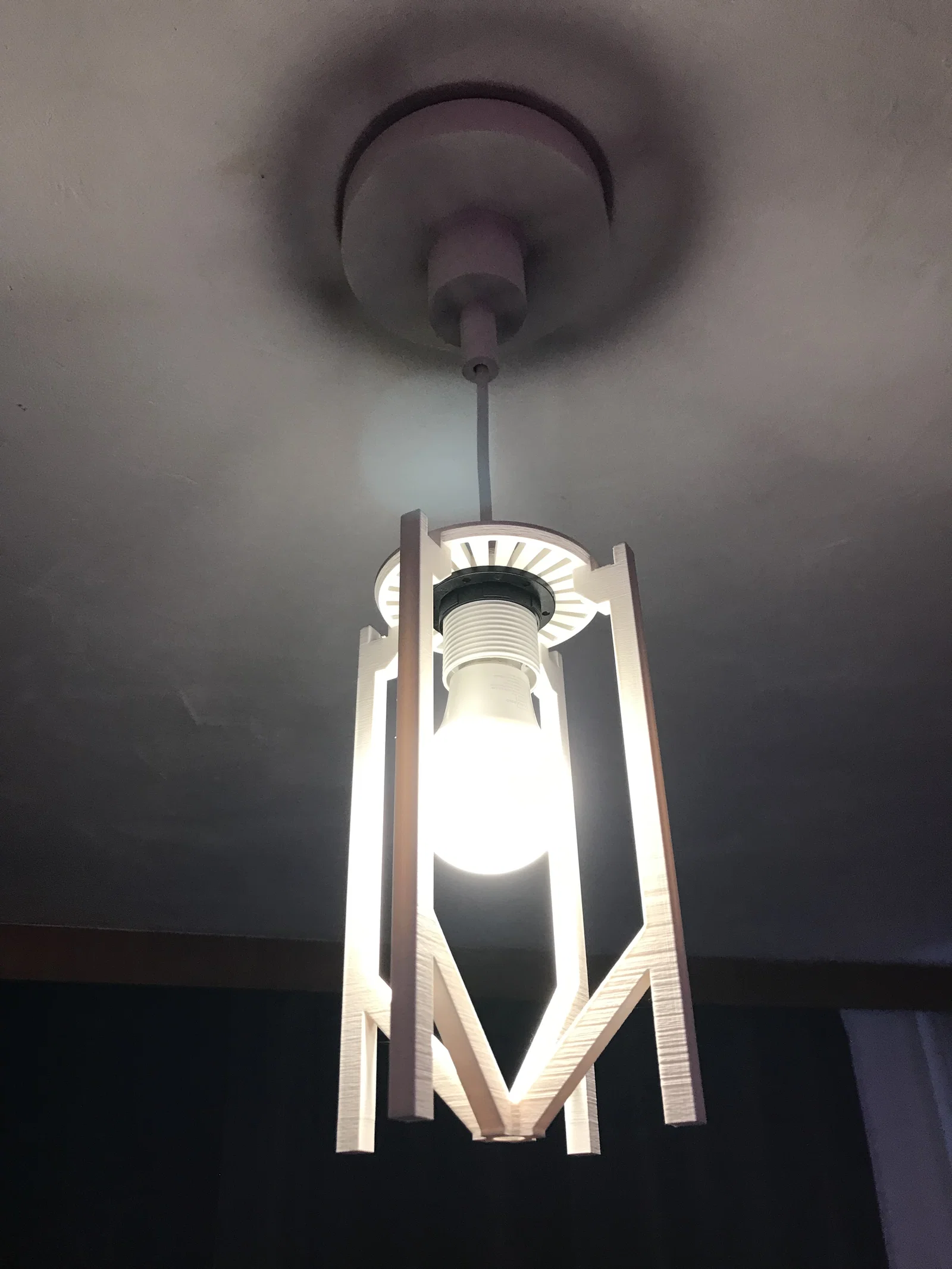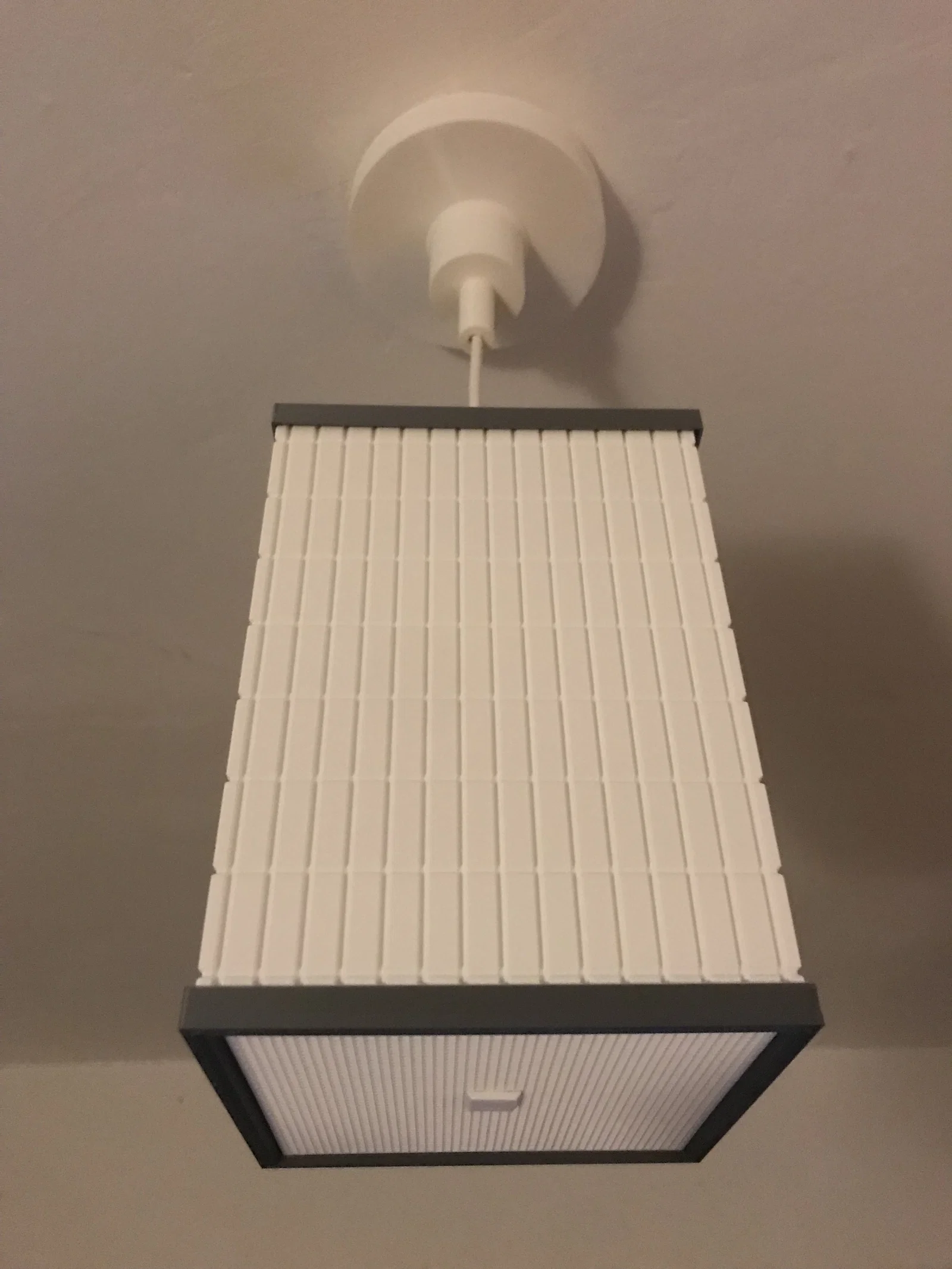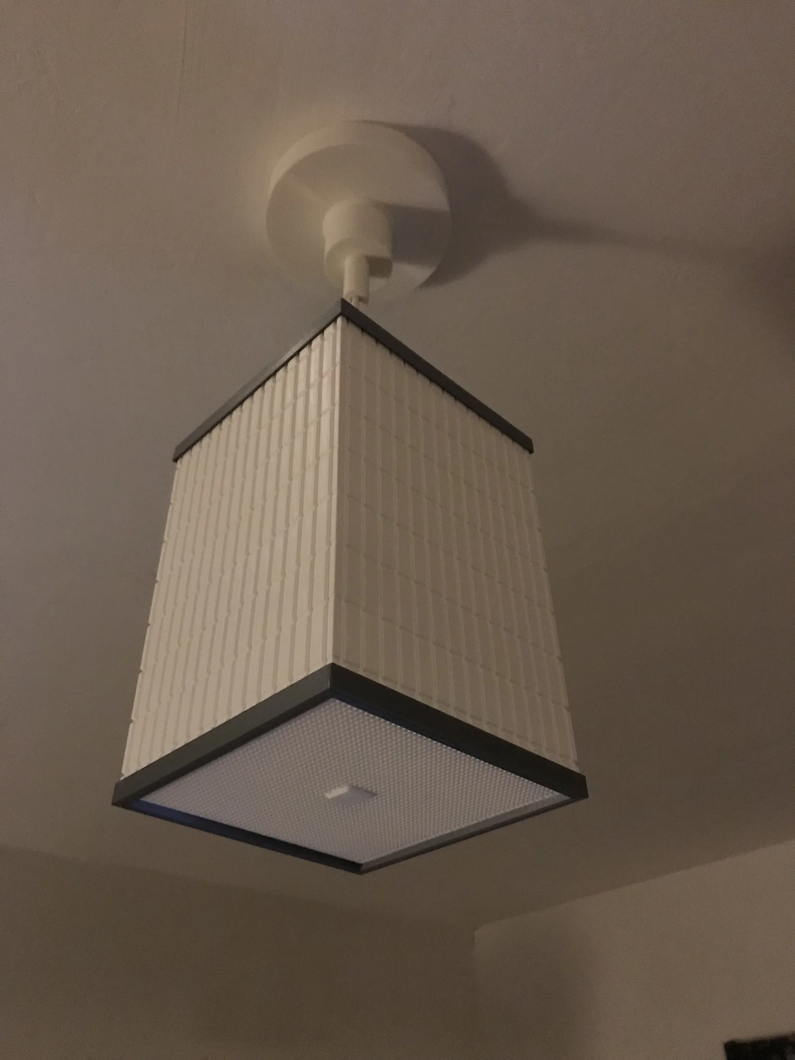 Mẫu đèn thả trần dạng vuông với cấu trúc modular và chụp đèn kín, cho ánh sáng dịu và gián tiếp. In được trên FDM, dùng đui e26/e27, hỗ trợ lắp 1 hoặc 2 shade và hệ Universal Mounting.