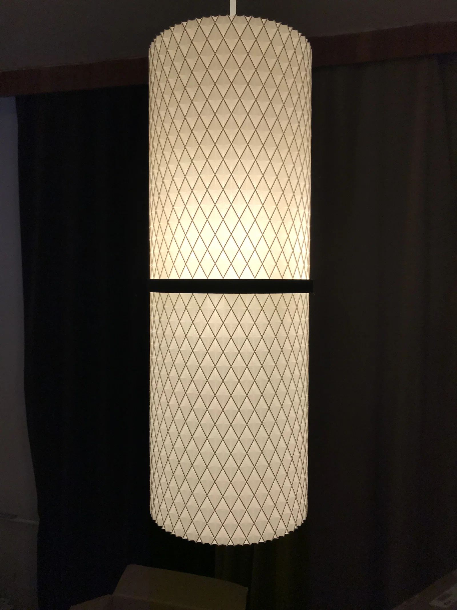 Mẫu đèn thả trần với chụp tròn dạng module, in được trên máy FDM phổ thông. Hệ Universal Mounting cho phép phối 7 kiểu lampshade để tạo đèn 1 hoặc 2 chụp, tối ưu cho bóng A60 ren E27/E26.