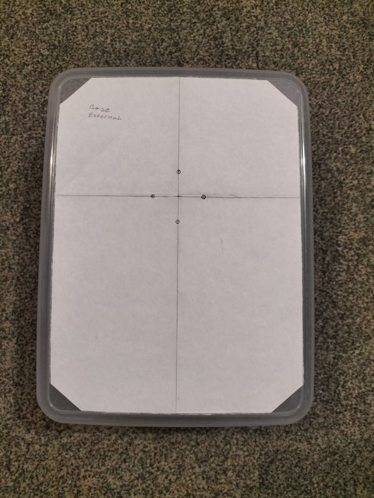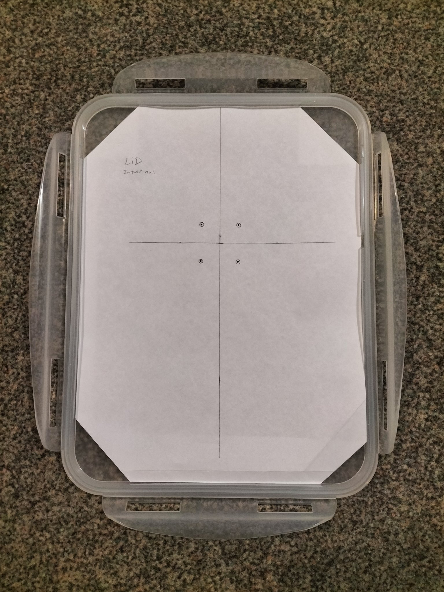 Tôi đã thêm các tệp PDF của các mẫu giấy mà tôi đã sử dụng để đánh dấu các lỗ khoan. Tôi đề nghị bạn in chúng ra với tỷ lệ 1:1 và cắt chúng ra. Lưu ý rằng mẫu nắp được đặt ở bên trong nắp và có các cạnh thẳng. Mẫu đáy nằm ở mặt dưới của đáy và có các cạnh hơi cong.