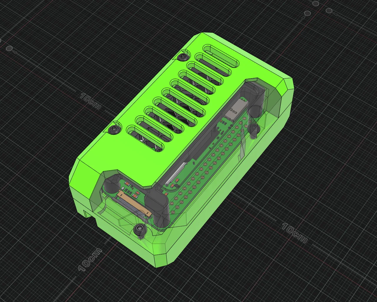 Vỏ (case) dạng modular cho Raspberry Pi Zero 2 W. Lắp bằng vít tự ta-rô M2.5 cho case và Pi, có tùy chọn bắt lên nhôm định hình 3060. Không cần supports, có thể tháo mặt để đi dây/cáp ribbon (3MF).