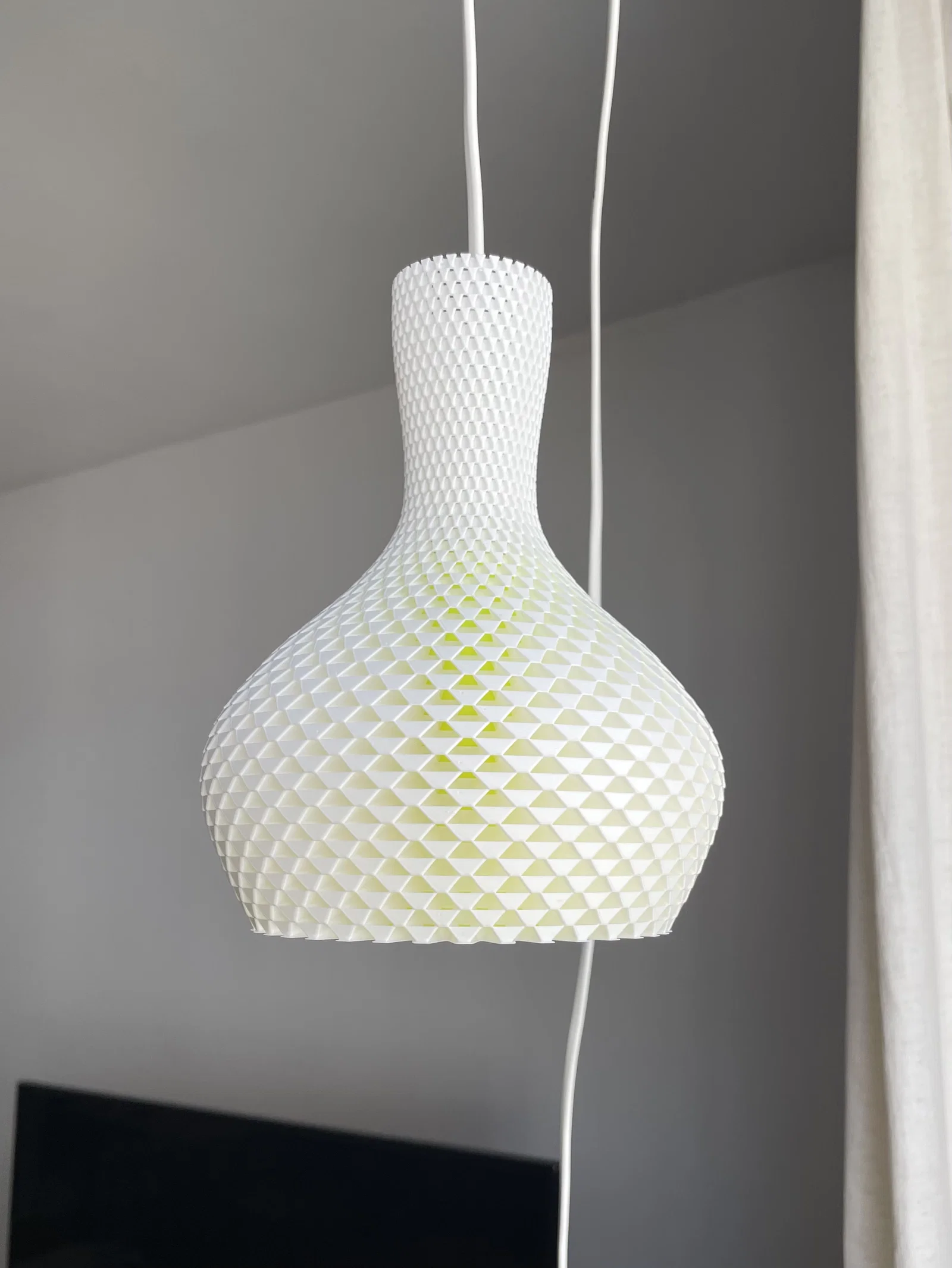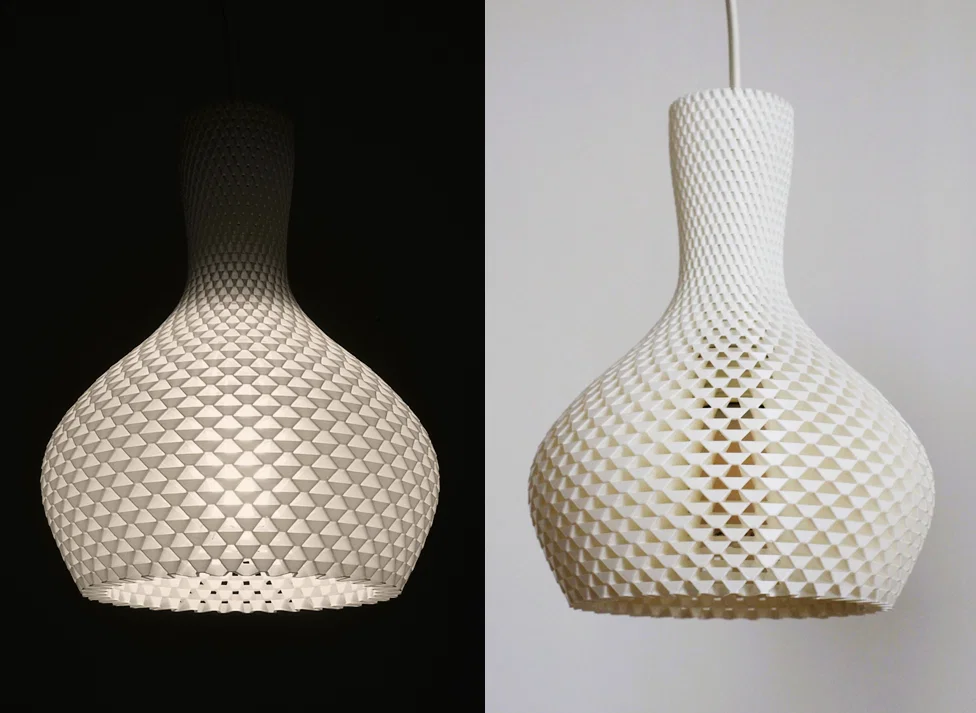 In 3D: Phần chụp đèn được in chỉ với 1 perimeter (mỗi layer), nhưng không in theo vase mode.