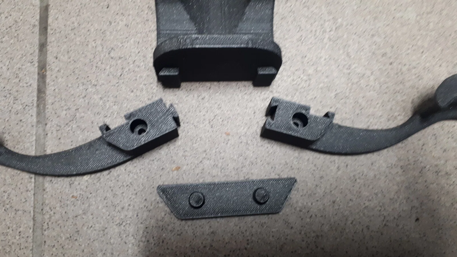 Mình in bằng PLA, có dùng supports cho 2 nhánh. Mình gặp hiện tượng warping ở phần chi tiết chính, nên để an toàn thì khuyên in làm 2 lần: (khối chính có border/brim + các phụ kiện không cần border/brim, chỉ cần supports).