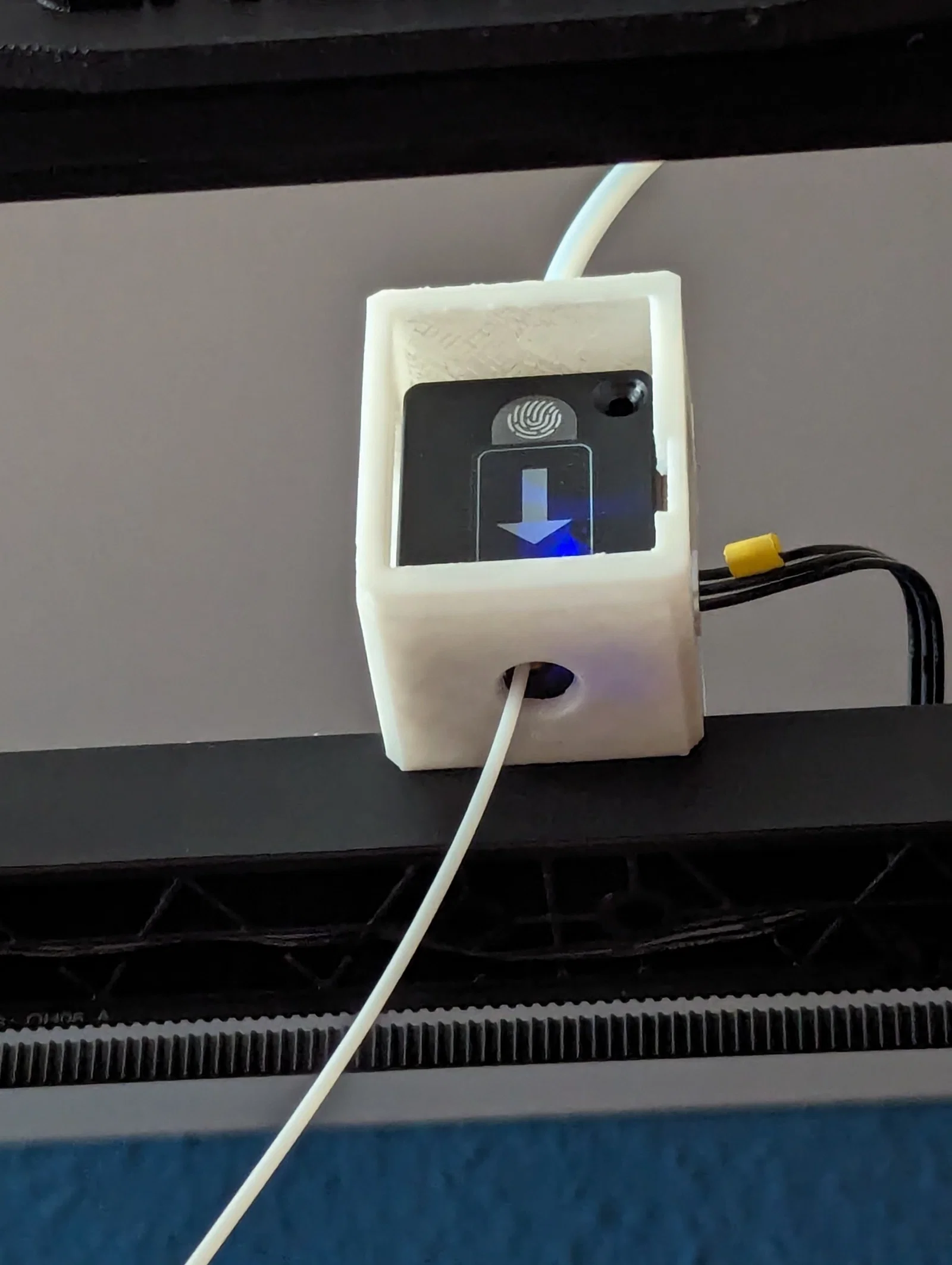 Để sử dụng giá đỡ này hiệu quả nhất, bạn cần thực hiện tháo tấm ốp phía sau của cảm biến gốc. Sau đó, phần lõi cảm biến sẽ vừa vặn hoàn hảo vào trong khối giá đỡ đã in. Bạn cũng có thể tùy chọn cắt ngắn đoạn ống dẫn nhựa ở phía trên để đường đi của dây nhựa được thẳng và mượt mà hơn, từ đó giảm ma sát và giúp máy đùn nhựa ổn định hơn.