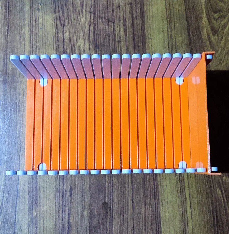 Đây là một bread slicer có thể tháo rời để cất gọn, tiết kiệm diện tích. Thiết kế này dành cho ổ bánh nướng bằng khuôn 5" x 9" và các loại dao dày tối đa 2mm. Mã nguồn của thiết kế được cung cấp ở mẫu gốc (link phía trên) để bạn chỉnh sửa, hỗ trợ các kích cỡ bánh và dao khác.