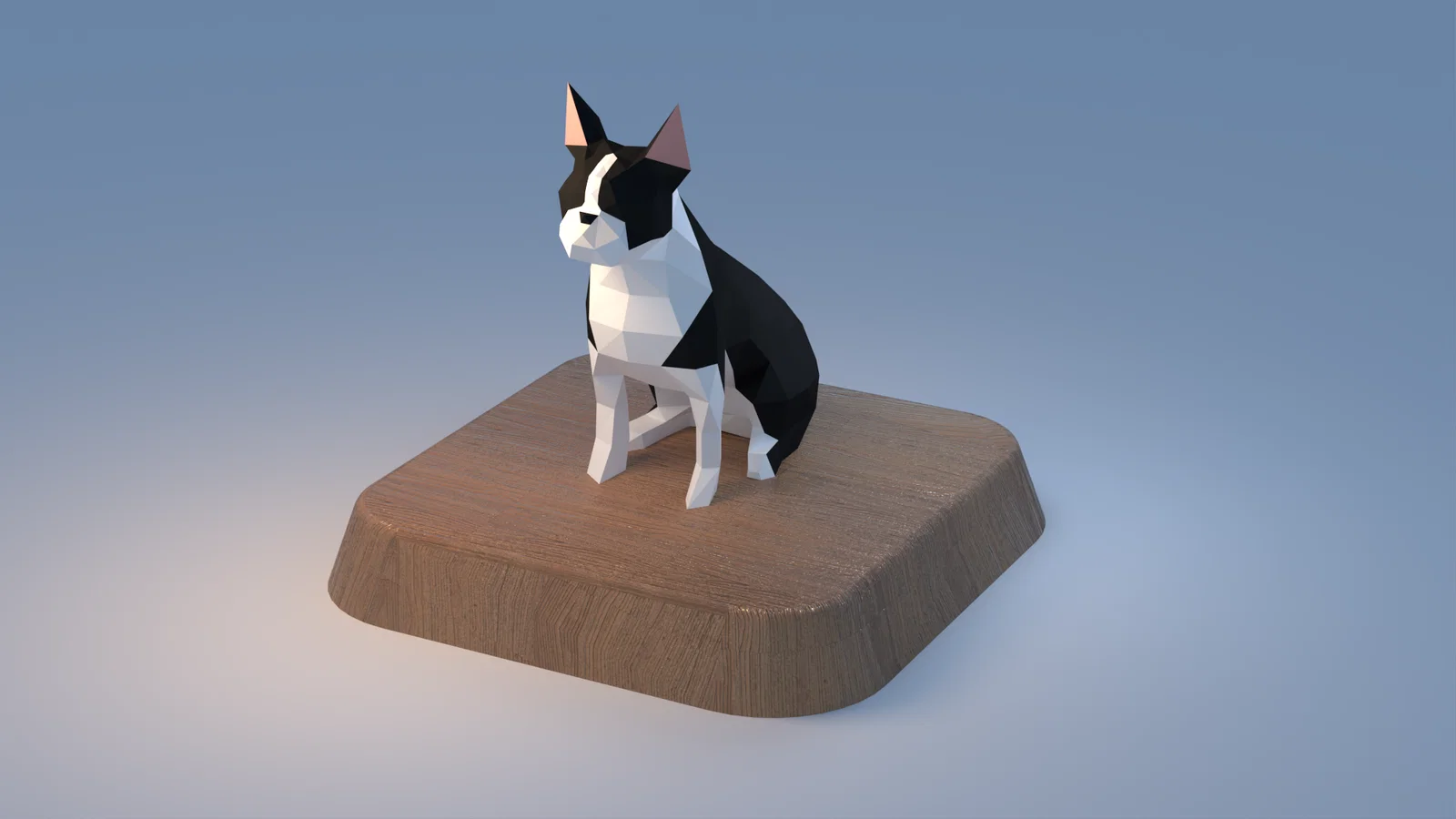 Mẫu Boston Terrier low poly làm để tưởng nhớ Lulu—thú cưng đã gắn bó từ 2012 và mất tháng 12/2023. Tác giả không muốn mua mẫu trả phí nên tự dựng lại và chia sẻ miễn phí.