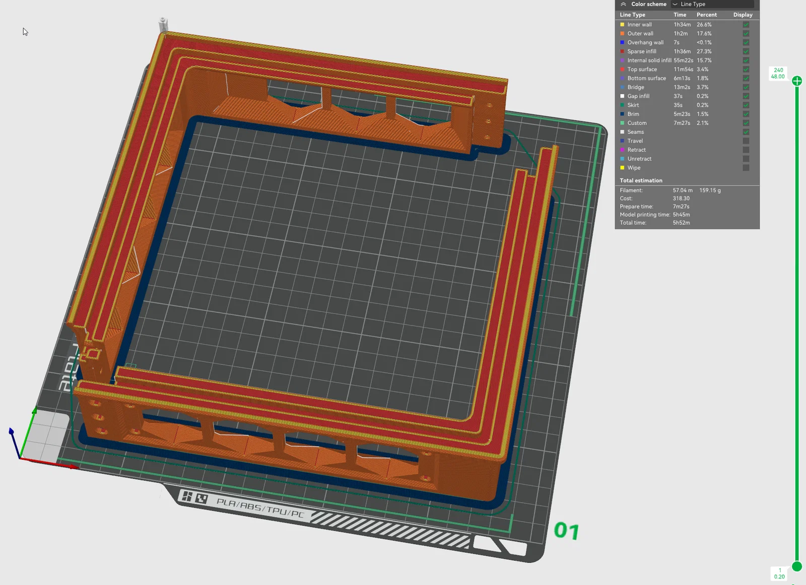 Nozzle 0.4 / layer 0.2 - các phần dài (trừ diffusors) dùng brim 5mm, không cần supports.