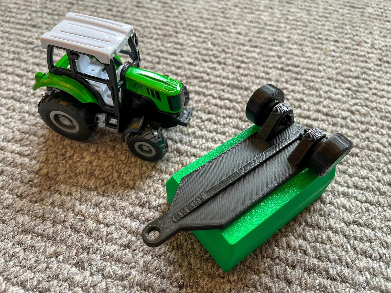 Con trai mình được tặng một chiếc Toy Tractor, nhưng cứ hỏi hoài cái Trailer đâu rồi. Mình tìm thử mà không thấy cái nào phù hợp, nên quyết định tự thiết kế rồi in cho bé một cái.
