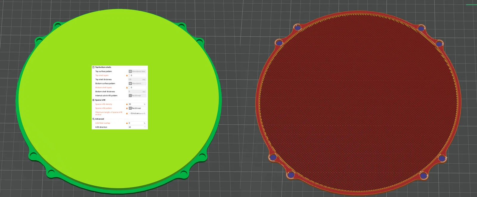- Đặt initial layer height là 0.20 mm. Nếu không, khi slice có thể không tạo được bề mặt liền mạch ở lớp đầu tiên quanh các lỗ nam châm.