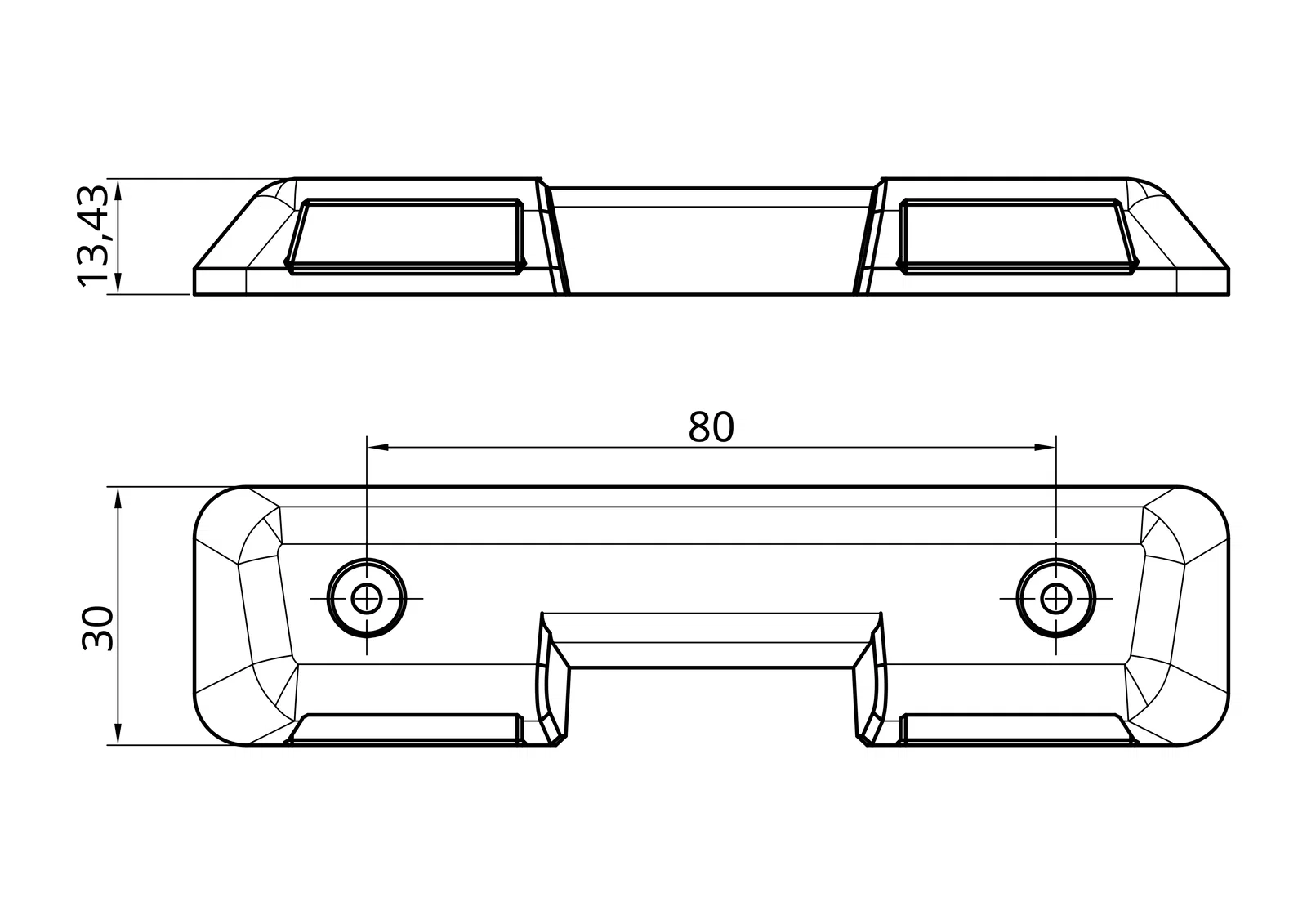 - Khoảng cách giữa các lỗ vít trên một bracket là 80mm.