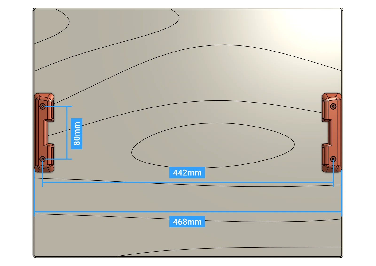 - Khoảng cách giữa lỗ vít của hai bracket là 442mm.