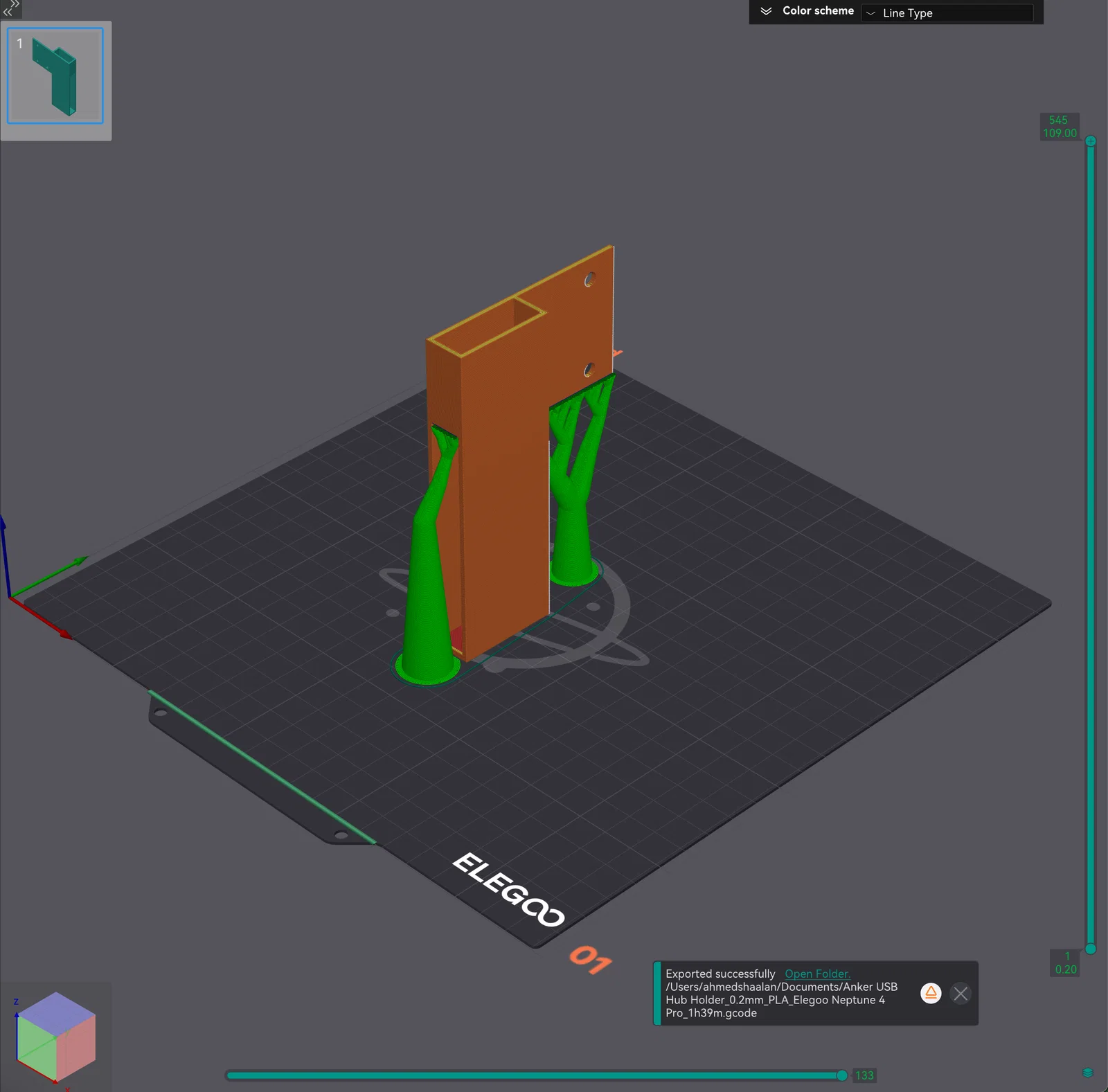 Ngàm gắn in 3D tùy chỉnh này được thiết kế riêng để cố định chắc chắn Anker Ultra Slim 4-Port USB 3.0 Data Hub lên thân máy in Elegoo Neptune 4 Pro. Tận dụng các con ốc sẵn có đang giữ màn hình cảm ứng, ngàm sẽ cho độ ổn định cao, đồng thời vẫn thuận tiện để cắm/rút các thiết bị USB. Tạm biệt dây nhợ lộn xộn và chào đón một góc làm việc gọn gàng, hiệu quả hơn với giải pháp thực tế này.