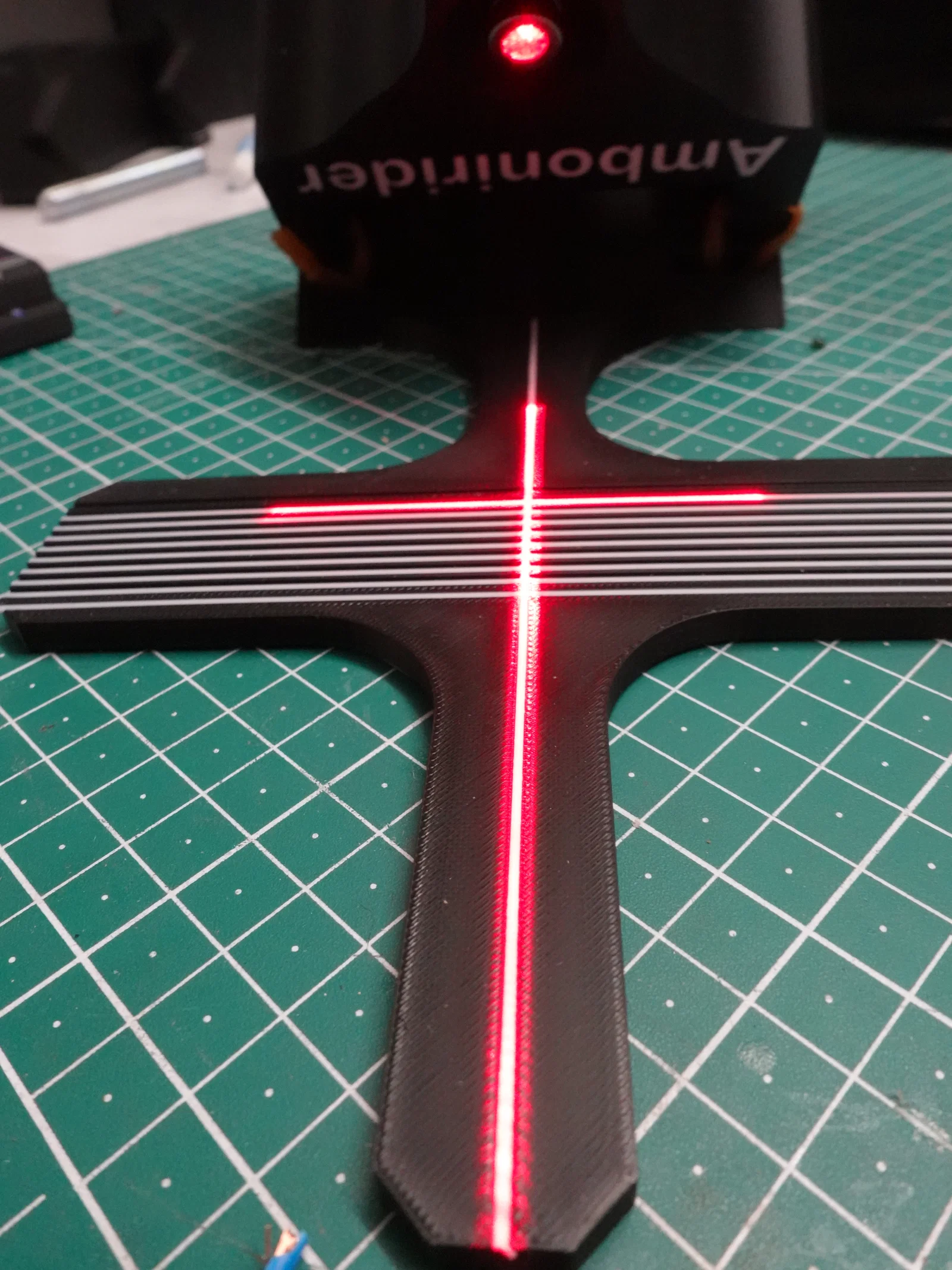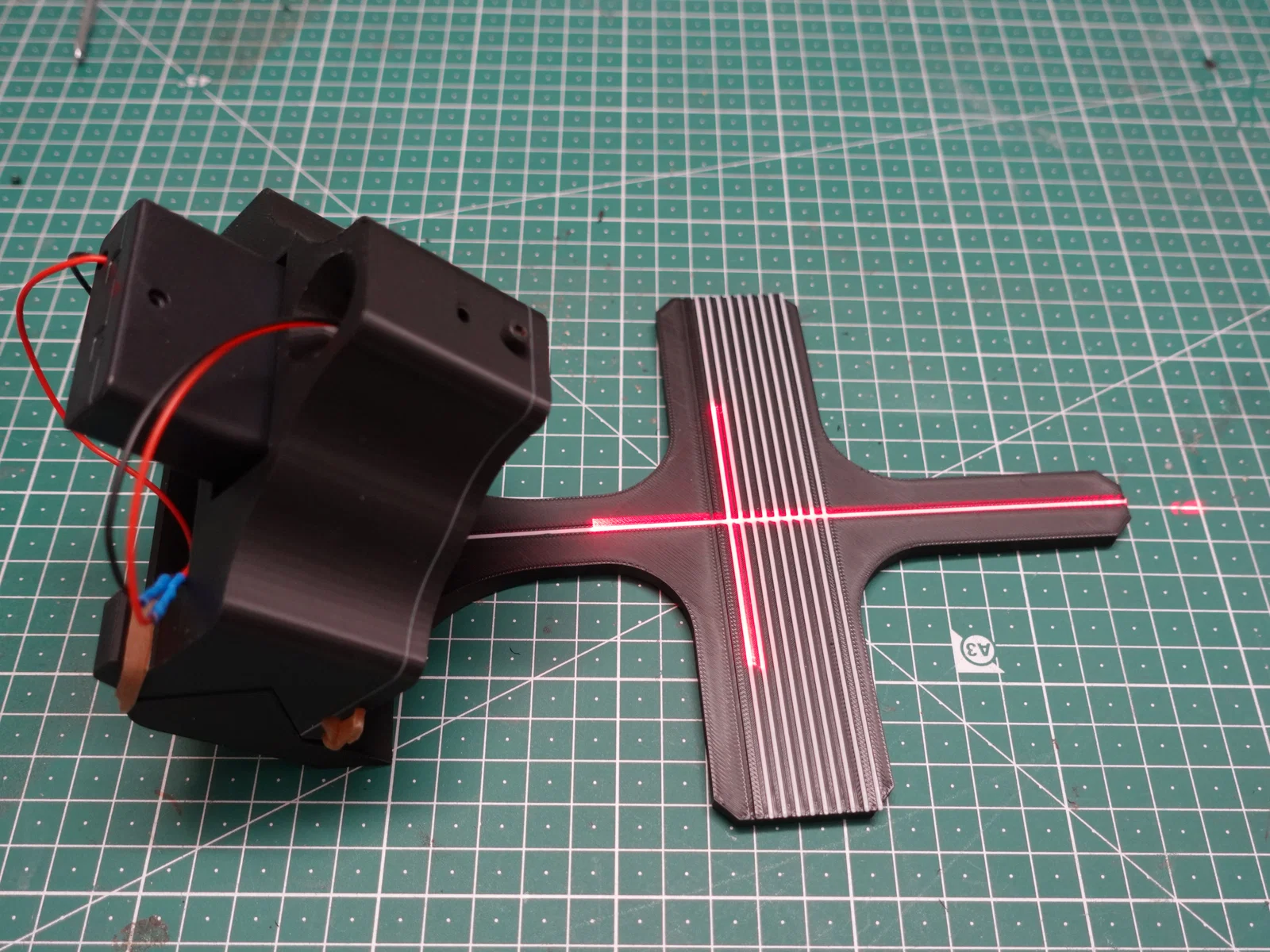Mẫu này gồm 2 phần: một phần gắn lên ghi-đông để căn thẳng, và phần còn lại để căn chỉnh chính tia laser.