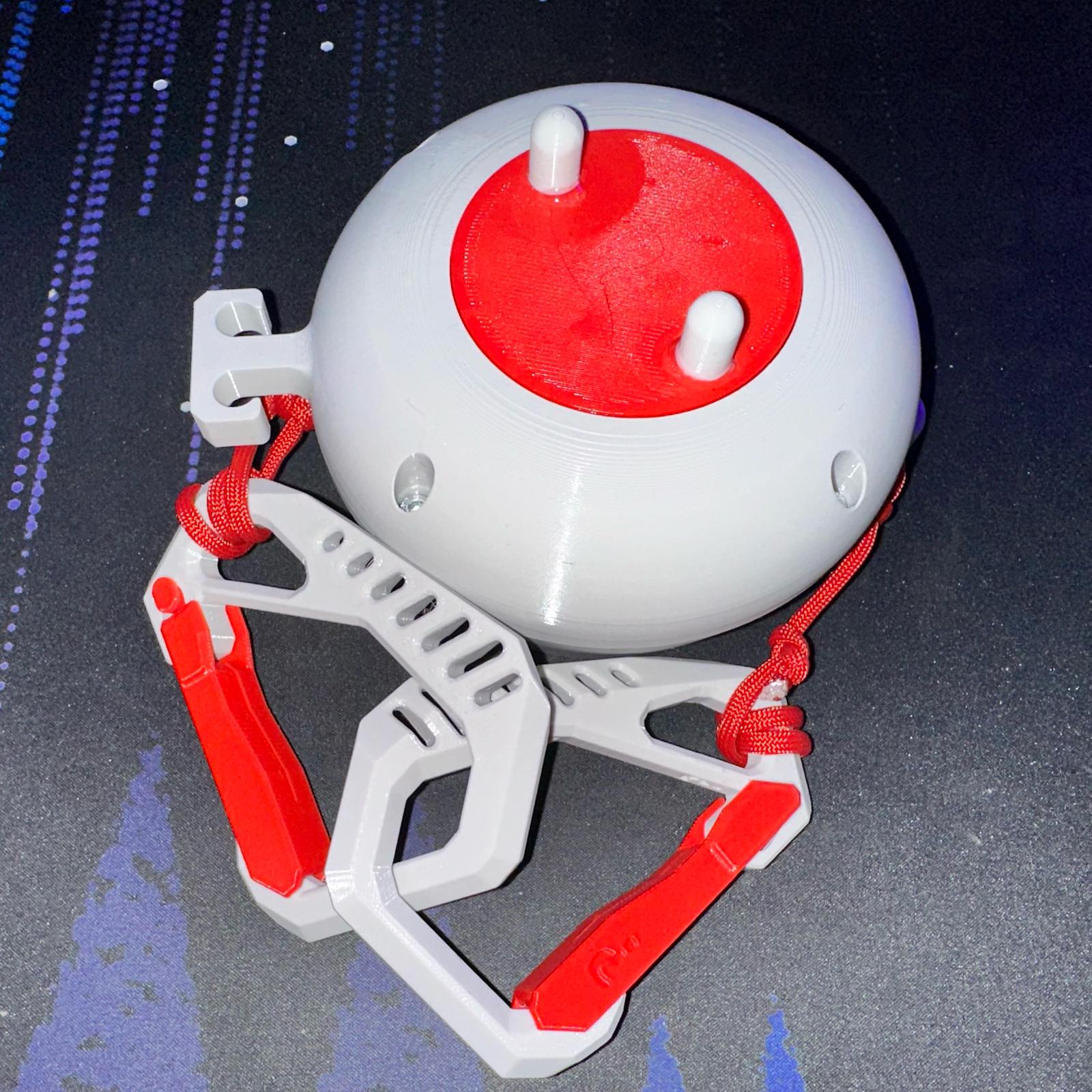 Dây phơi đồ dùng khi đi camping, thiết kế cuộn gọn trên spool, chứa khoảng 30m paracord. Dùng vòng bi 608zz, ốc M4x16 và đai ốc M4, in PETG. Gắn carabiner ở lỗ khoen và trên dây.