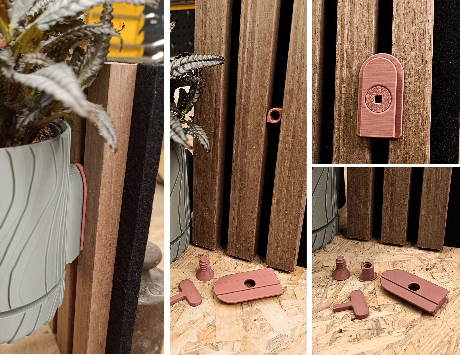 Chào bạn, mình có thiết kế một cái ngàm/giá treo tường cho Bauhaus Akustikpaneele, để bạn có thể treo các mẫu Wallplanter của mình lên đó. Cái ngàm này không cần thêm vật liệu nào như ốc vít… và cũng không làm hư tấm panel. Với lại bạn tháo ra cũng dễ, nhìn y như chưa từng gắn gì luôn… xịn hông?