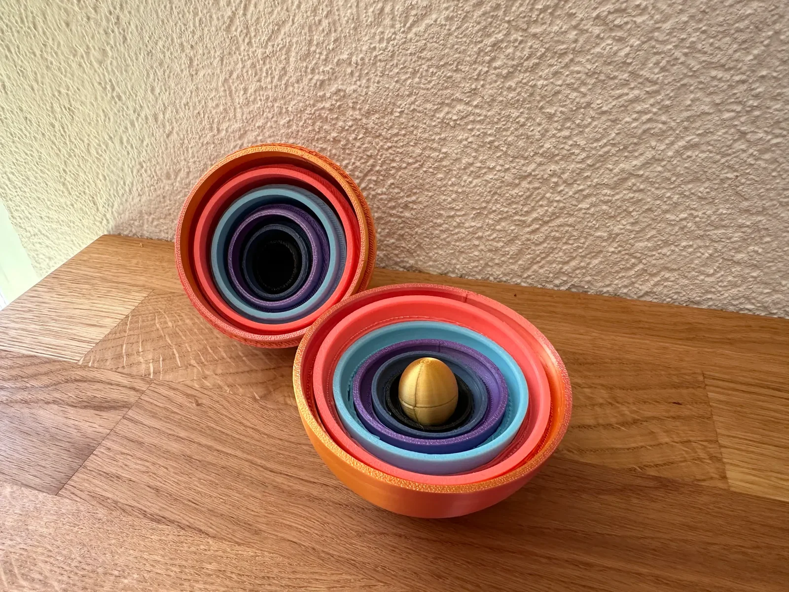 Bộ búp bê lồng nhau hình trứng Phục Sinh gồm 6 kích cỡ, trứng lớn nhất cao 10 cm. Mỗi trứng in 2 phần bấm khớp, có thêm 1 trứng giữa dạng solid. Có thể scale, và nên chỉnh horizontal expansion trong slicer nếu cần.