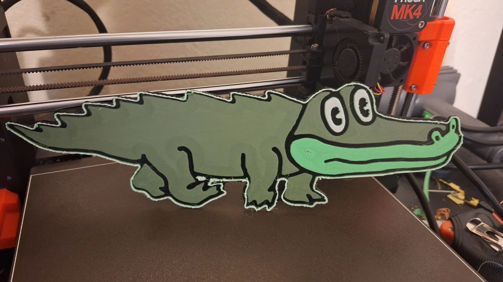 Mascot vui nhộn của ban nhạc King Gizzard được đưa vào HueForge và slicer/in ra rất mượt. Kèm sẵn thông số layer và độ cao từng màu (Black, Dark Green, Neon Green, White) để bạn canh in chuẩn.