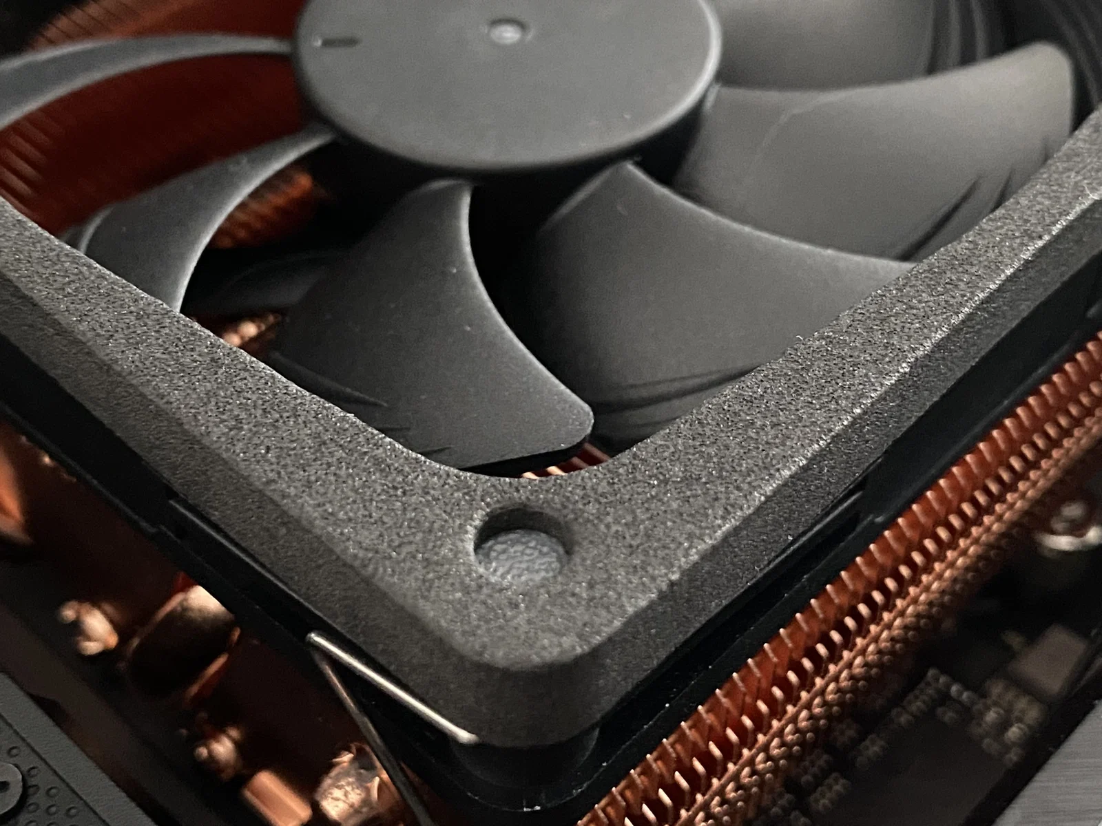 Các peg được thiết kế để lắp kiểu friction fit (ép chặt bằng ma sát) và vẫn chừa khoảng hở để không vướng các fan retainer clips.