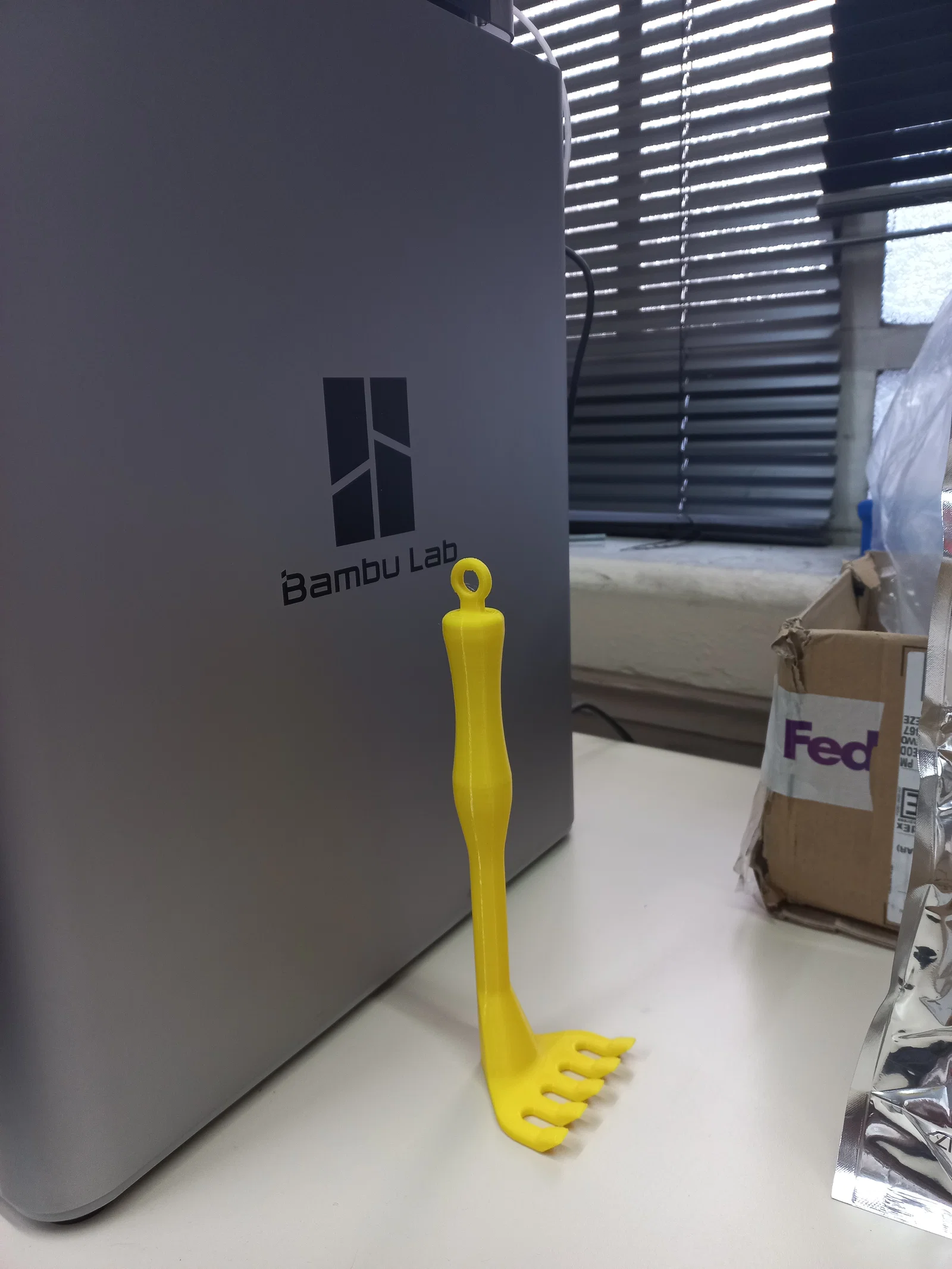 Mẫu Back Scratcher đơn giản, in nhanh, dễ dùng. Có thêm bản kích thước lớn để với xa hơn. File 3mf và gcode tối ưu cho layer height 0,3 mm, gia cố 80% infill ở các điểm yếu để chắc chắn hơn.