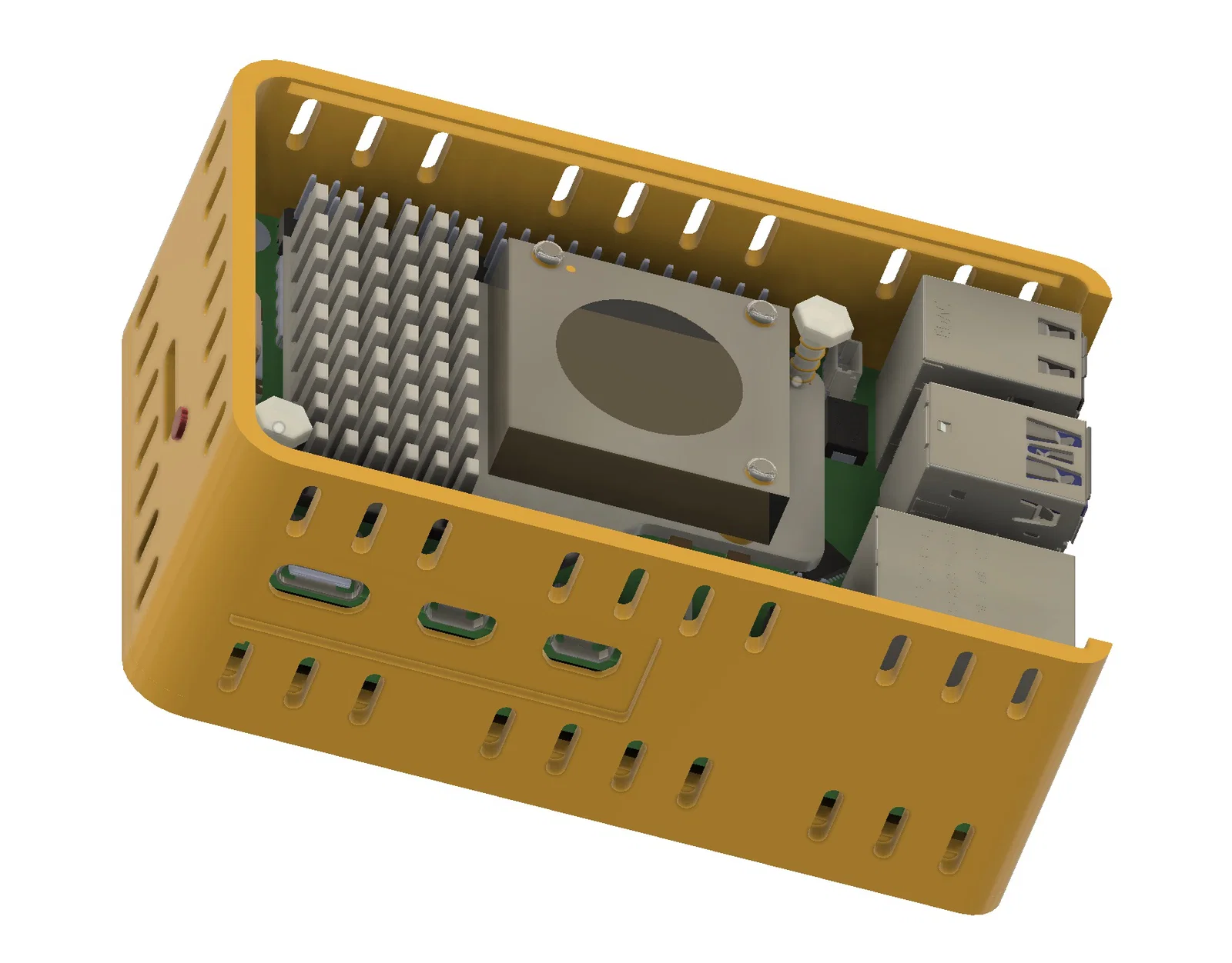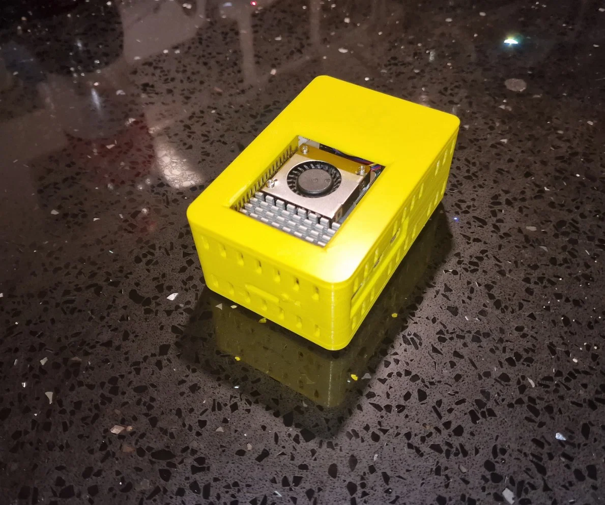 Vỏ được thiết kế để chứa Pimoroni NVMe Base gắn bên dưới Pi.