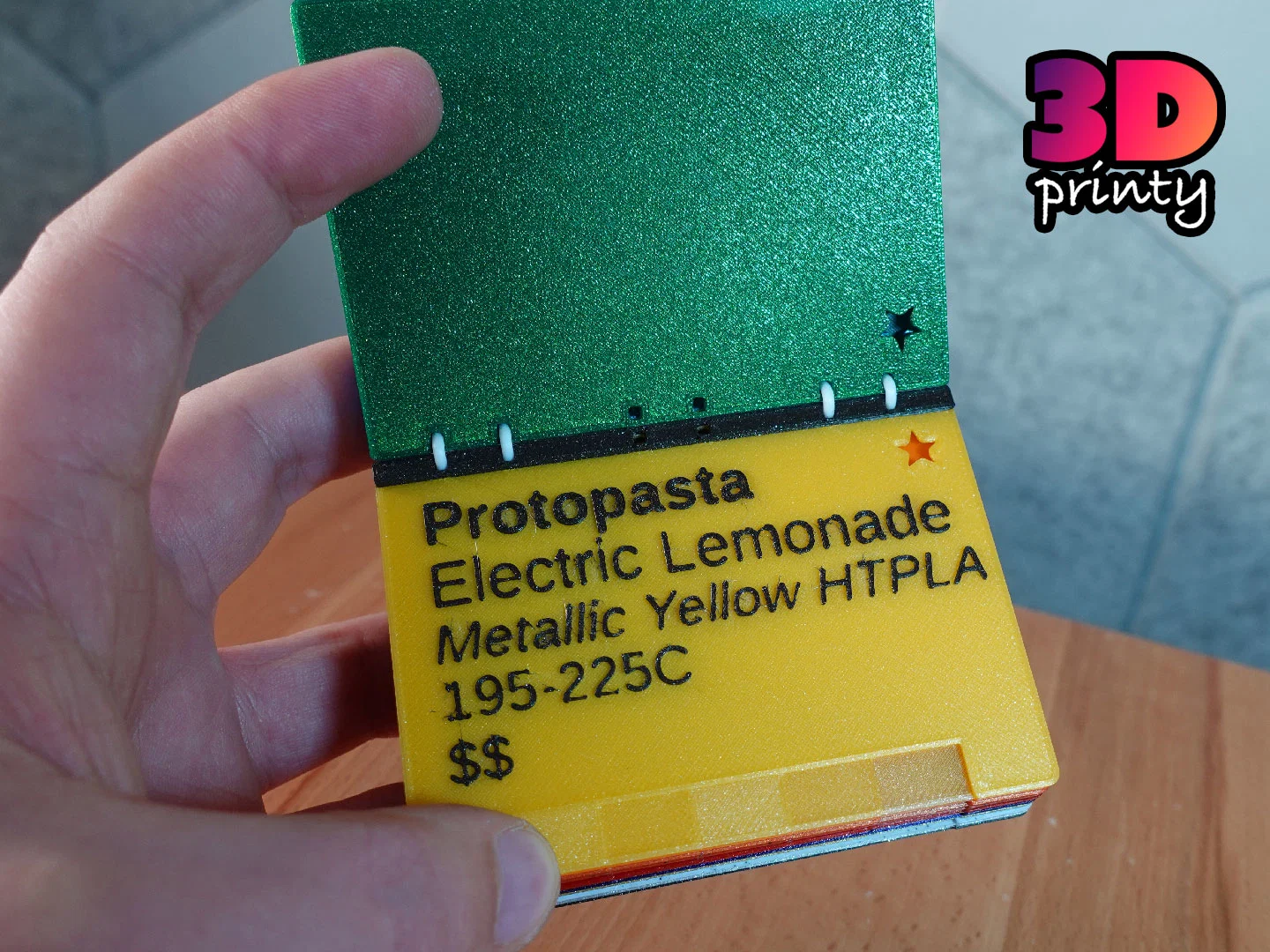 Booklet mẫu filament gọn gàng để lưu và so sánh màu/vật liệu. Dự án OpenSCAD cho phép tùy biến nhanh bằng cách nhập thông số, rồi export STL để in. Có hướng dẫn in, lắp dây TPU/thun và giấy phép CC BY.