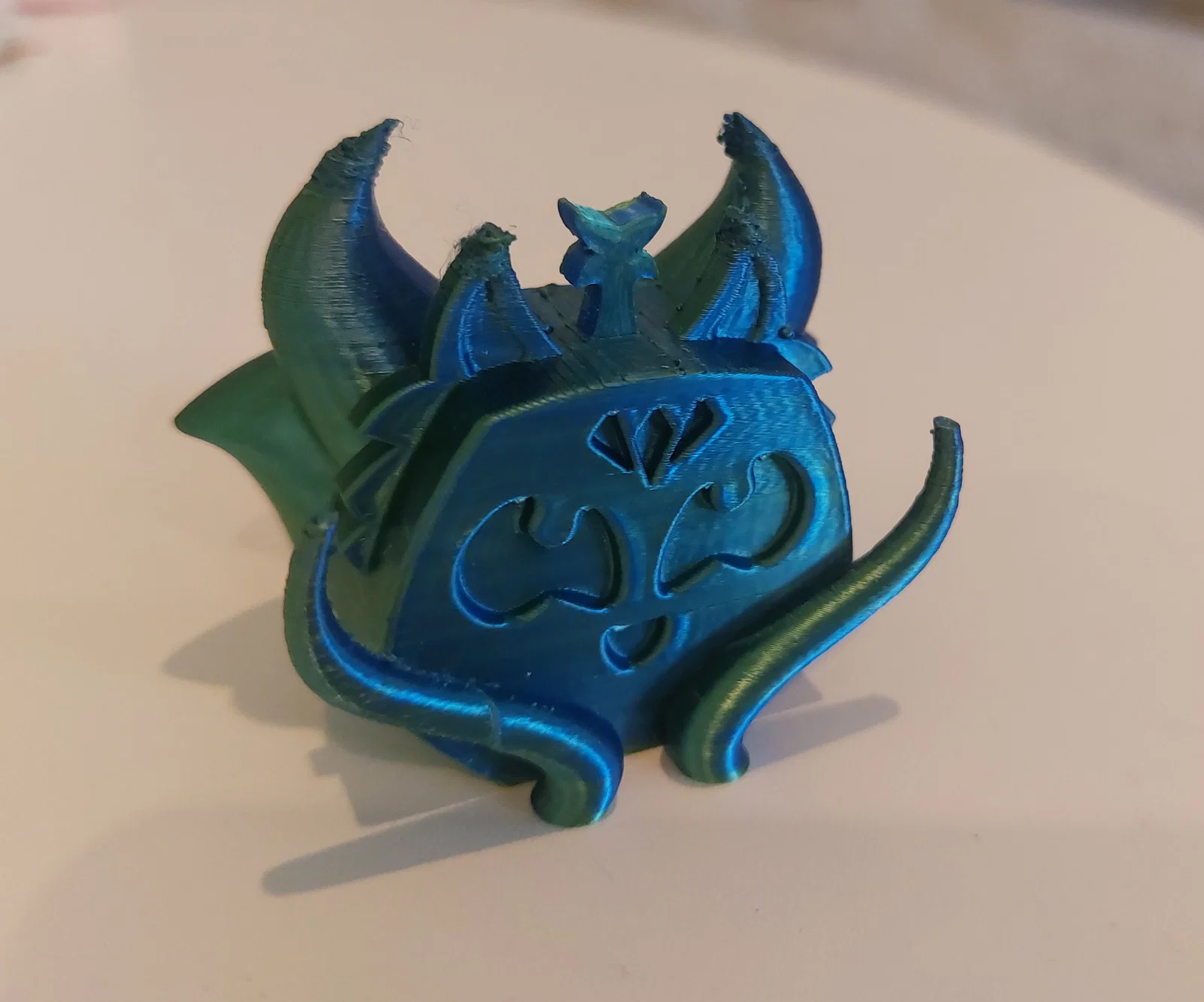 In không cần supports vẫn ổn, nhưng mình bị vấn đề stringing ở mấy phần nhọn trên đỉnh mà chưa tìm ra nguyên nhân—chắc chắn là do settings.