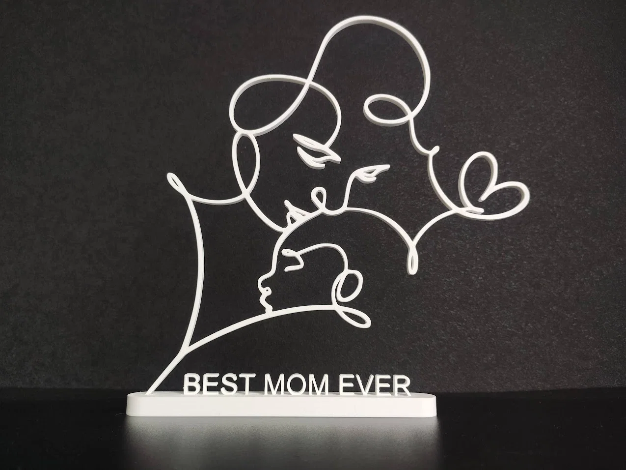 Mẫu “Loving Mom” là silhouette hình mẹ bồng con, có kèm đế để dựng đứng trưng bày. Có thể in phiên bản có dòng chữ “BEST MOM EVER” hoặc bản trơn không chữ, tuỳ nhu cầu.