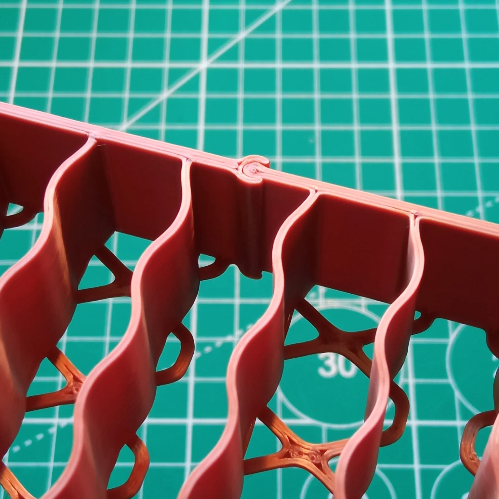 Khay chứa pin này in không cần supports cũng như không cần infill — chỉ dùng walls thôi. Rất tiết kiệm filament và in nhanh.