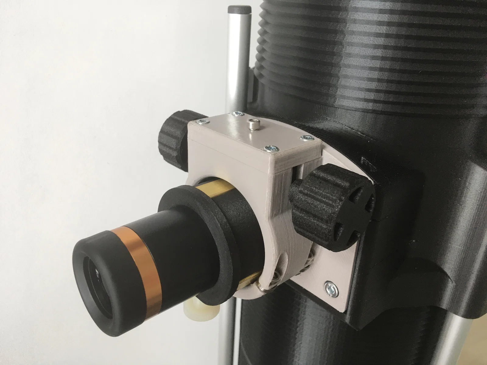 Nếu lỗ trên focuser pinion block bị nhỏ quá so với lò xo (springs) bạn có, bạn có thể thêm negative volume > cylinder trong slicer để tạo lỗ với kích thước đúng theo lò xo bạn tìm được.