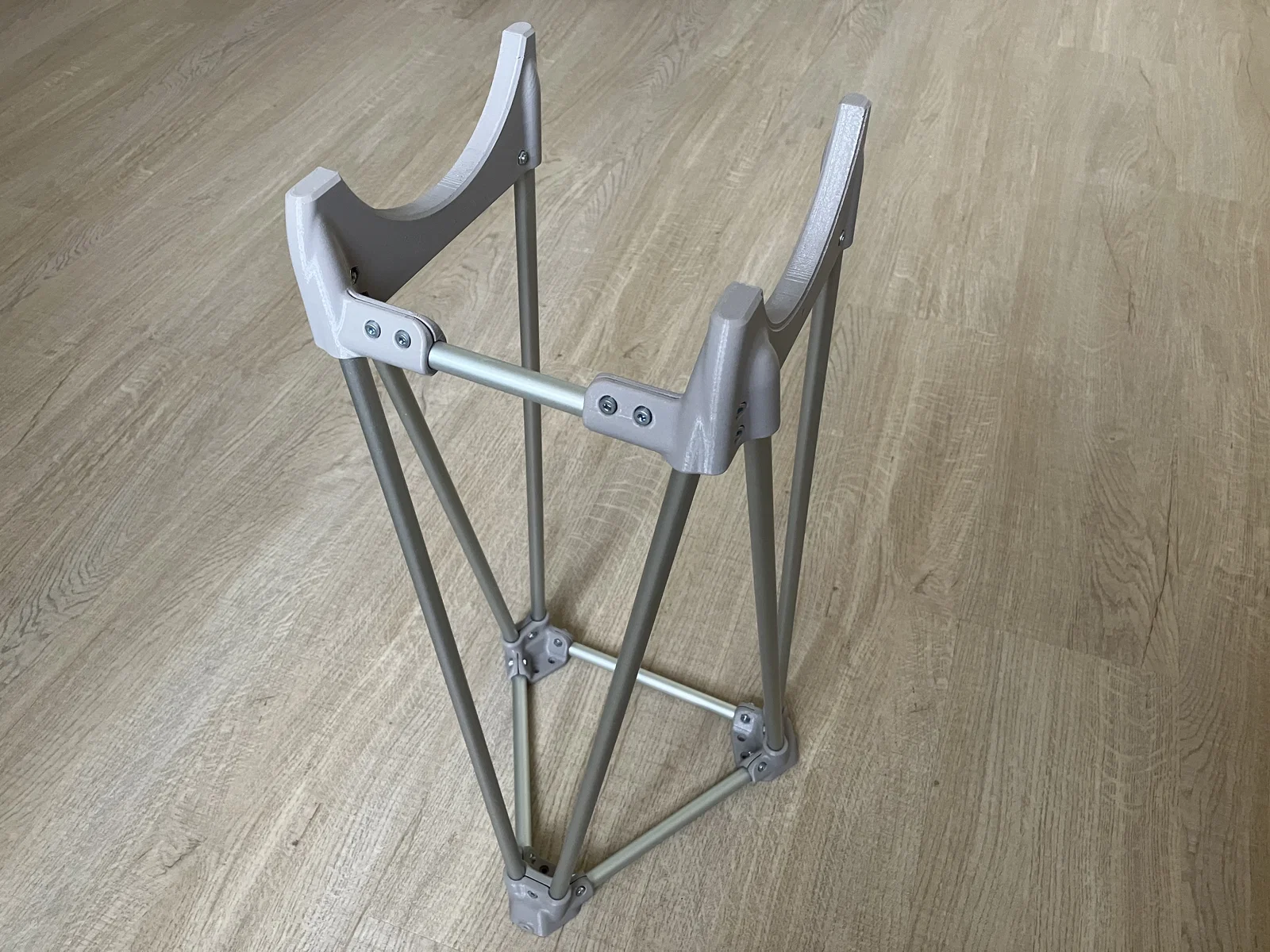 Ống ngắn nhất dùng để nối hai nửa phía trên. Phần còn lại thì khá đơn giản, nhưng lúc gắn thanh tam giác dưới cùng, nhớ cẩn thận kẻo nứt phần chân. Vì vậy, hãy để tới cuối cùng mới siết chặt toàn bộ fastener. Có thể xem hình mount hoàn thiện để làm tham khảo.