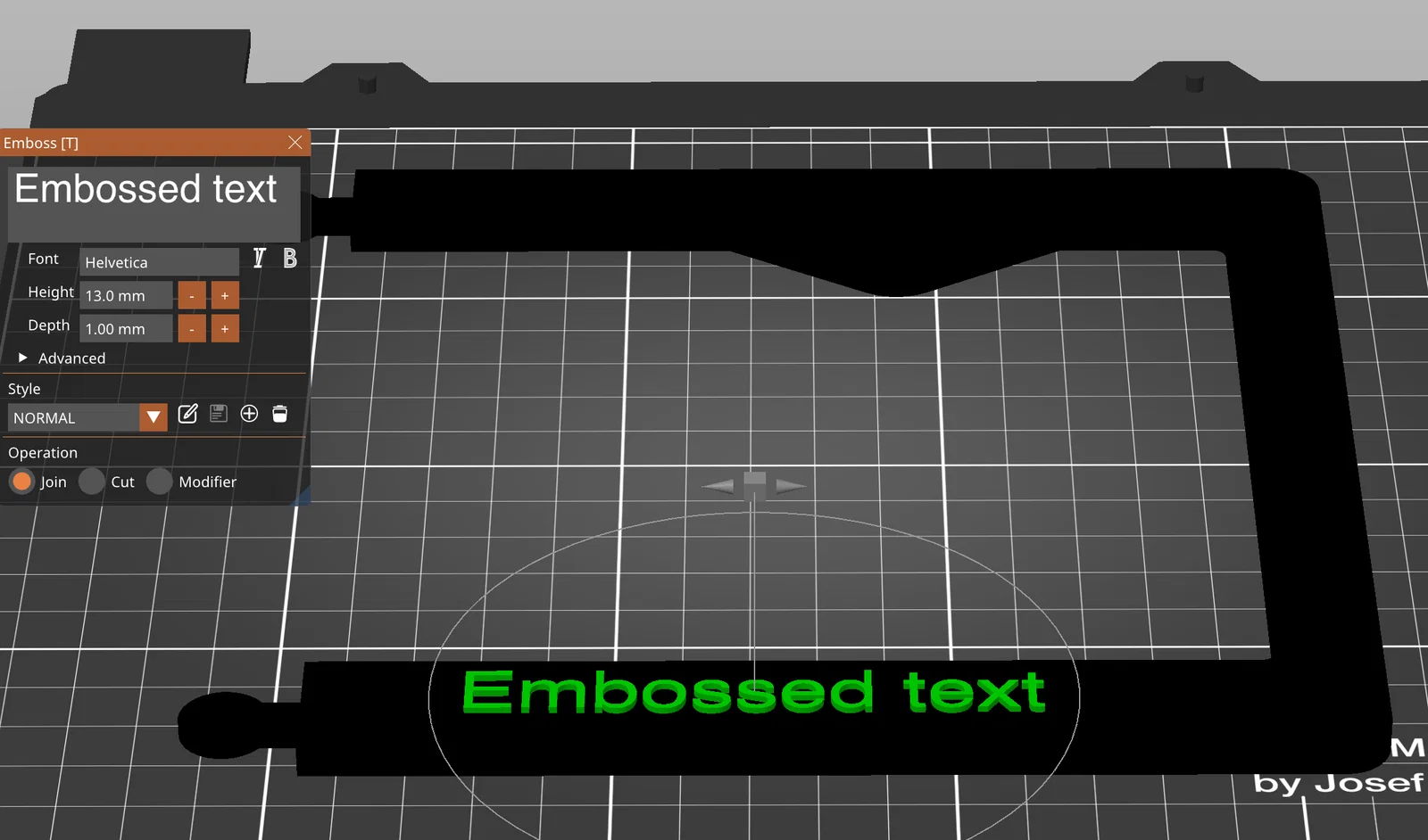Model này là “tấm nền trống”. Bạn có thể thêm chữ nổi của riêng bạn trong PrusaSlicer (bấm chuột phải lên bề mặt, chọn "add part" rồi chọn “text”). Làm độ dày khoảng 1mm trở lên. Hoặc bạn có thể làm chữ chìm, thậm chí khoét chìm một hình chữ nhật rồi đặt chữ nổi bên trong.