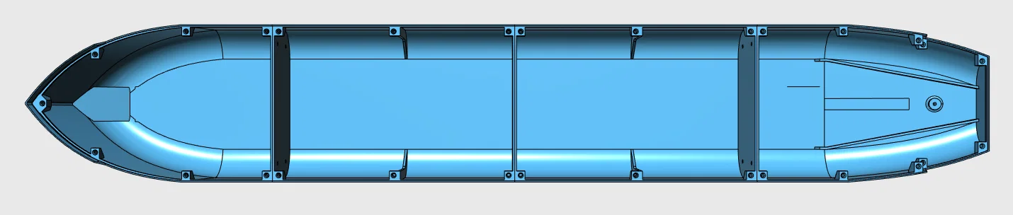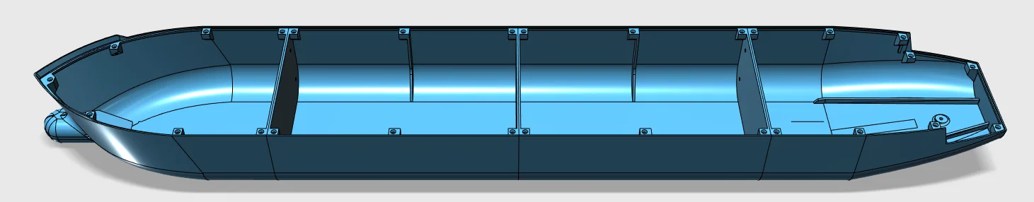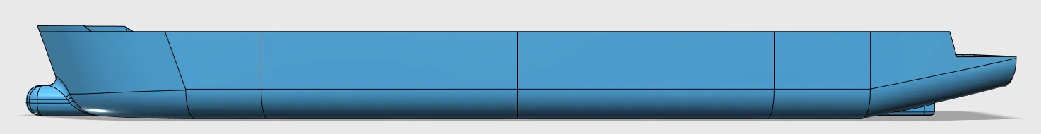 Thân tàu (Ship Hull) dài 80cm, còn dang dở (dự định làm tàu LNG). Có 2 phiên bản: bản có lỗ để làm chìm và bản không lỗ (trừ lỗ vít). In Prusa MK3S, layer height 0.2–0.3.